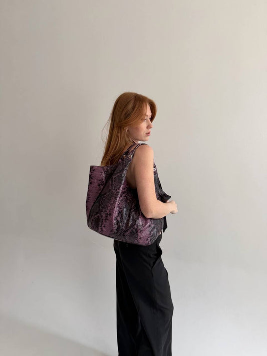 Vintage purple python skin imitation bag