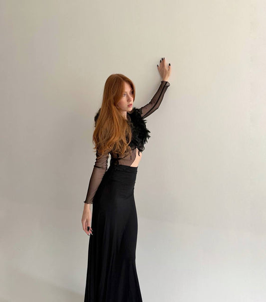 Vintage mesh blouse with ostrich feather collar