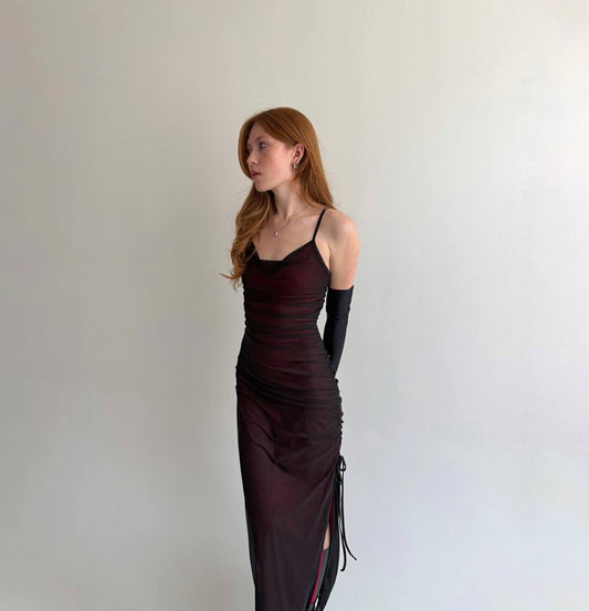 Vintage long fitted dress with side gathering
