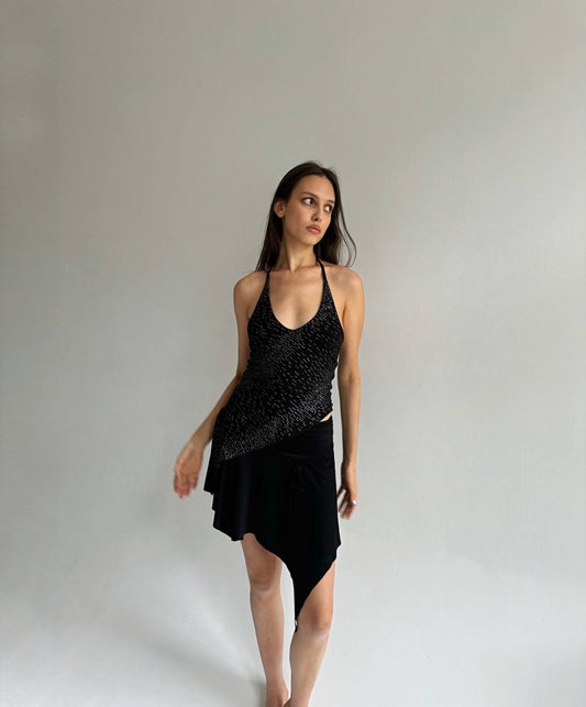 Vintage y2k glitter asymmetrical blouse