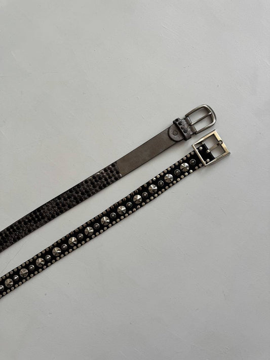 Vintage genuine leather black studded belt