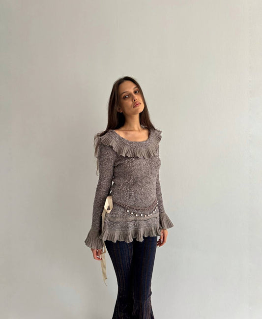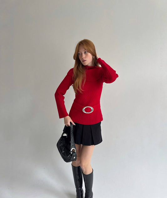 Vintage handmade 100% rayon knitted asymmetrical sweater