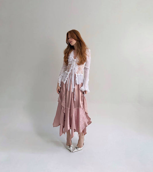 Vintage viscose asymmetrical skirt with lace