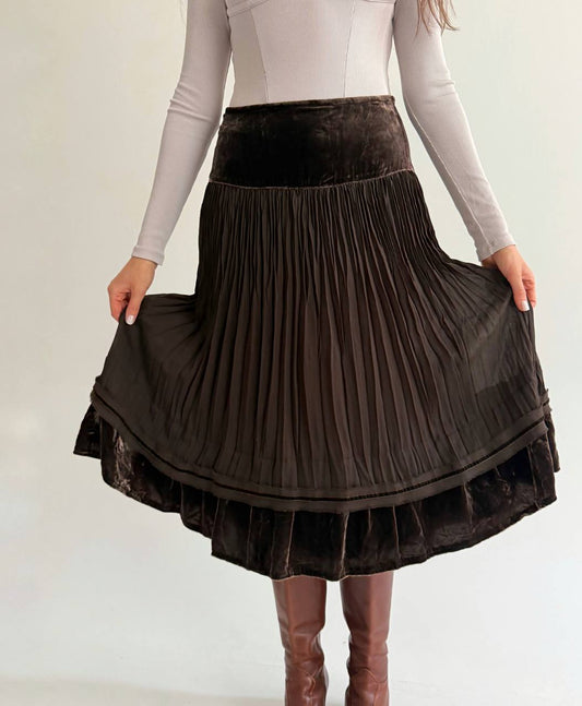 Vintage velvet pleated brown skirt