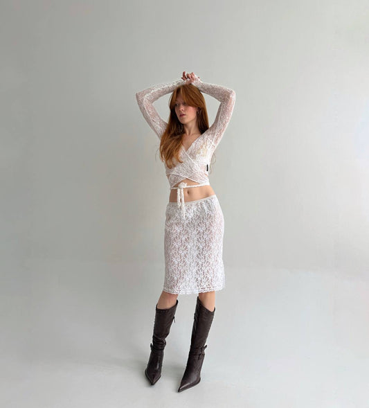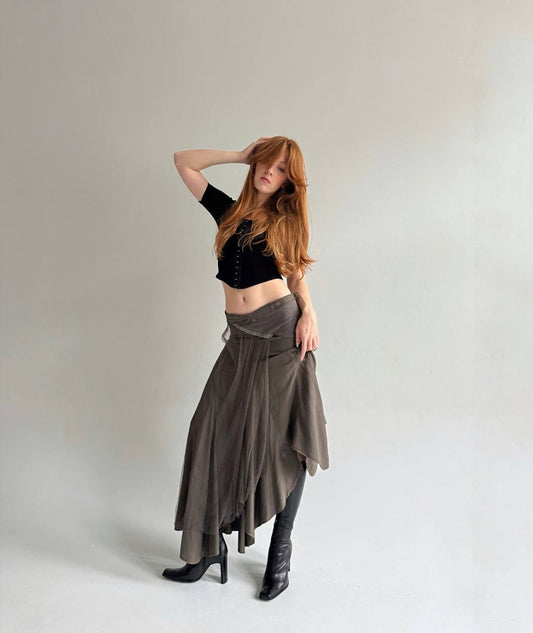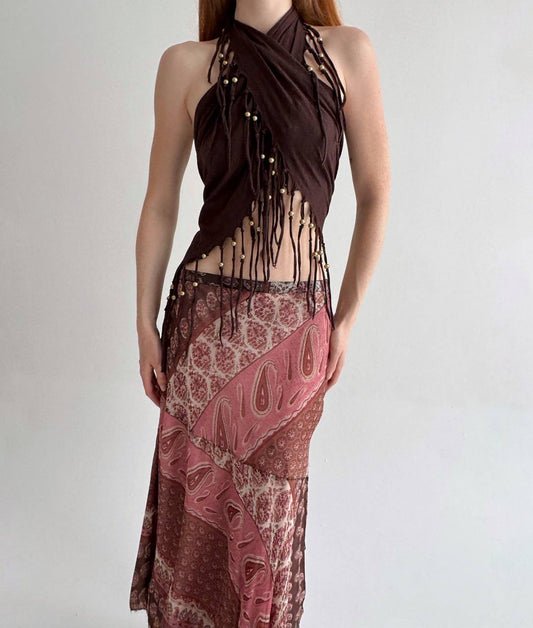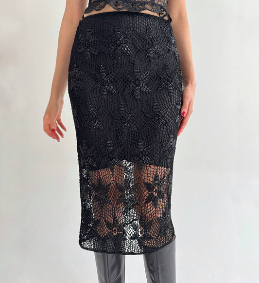 Vintage Alberta Ferretti rayon crochet beaded skirt