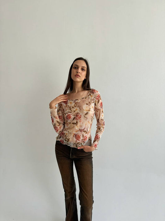 Vintage mesh rose blouse