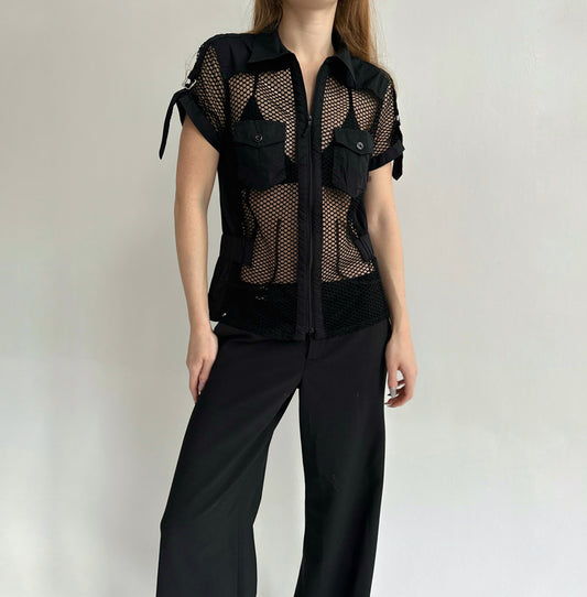 Vintage 73% cotton fishnet blouse