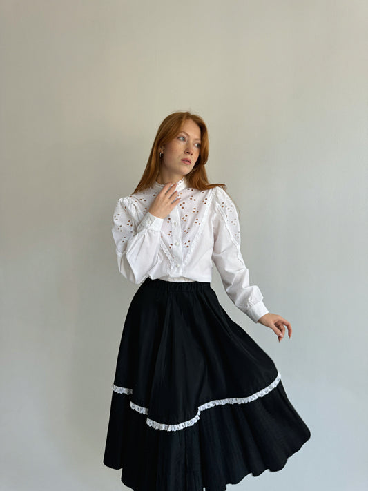 Vintage 100% cotton blouse with eyelet embroidery