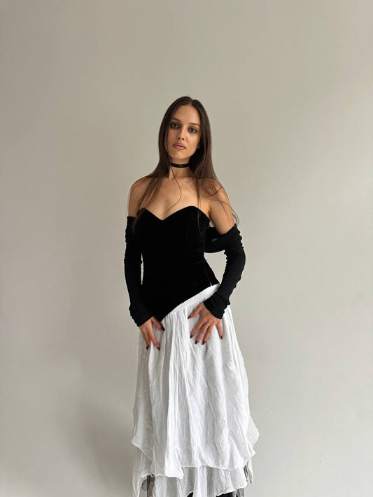 Vintage cotton black velvet corset