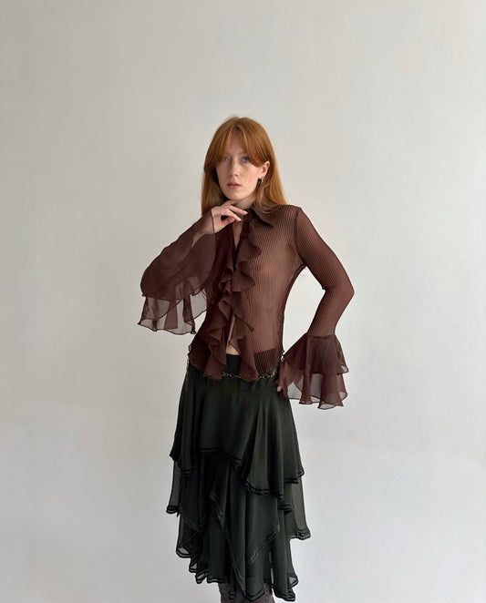 Vintage fairycore pleated ruffled blouse