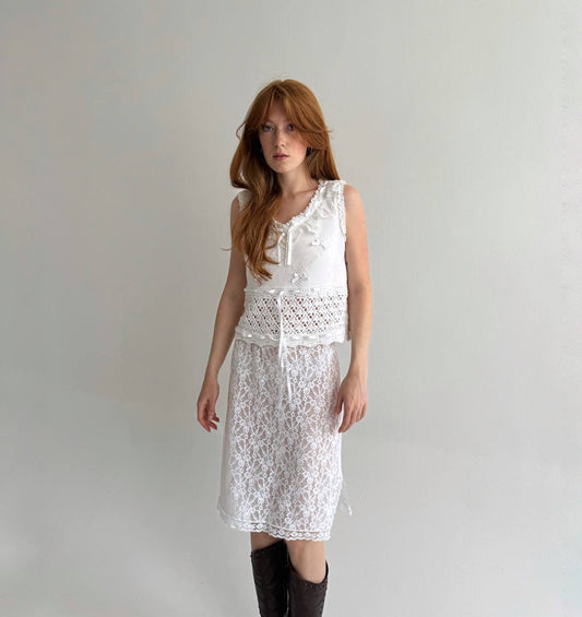 Vintage cotton white crochet top