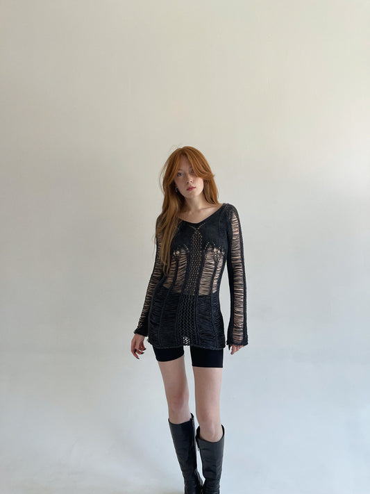 Vintage handmade 100% rayon knitted asymmetrical sweater