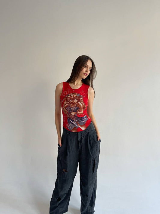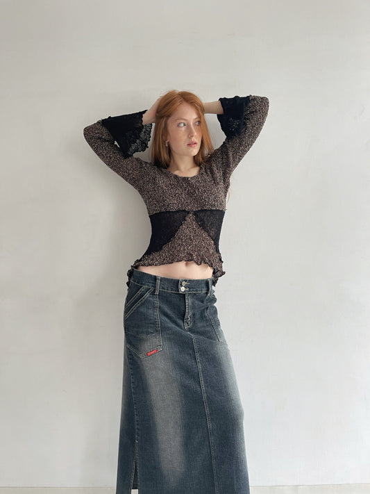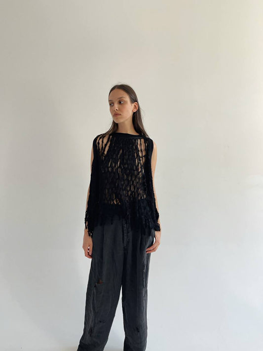 DKNY black avant garde distressed blouse made of viscose and merino wool