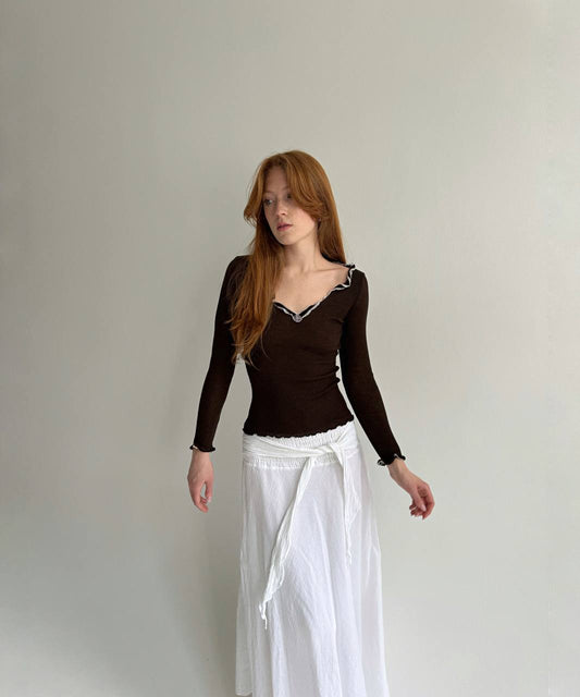 Vintage silk and wool brown cottagecore blouse