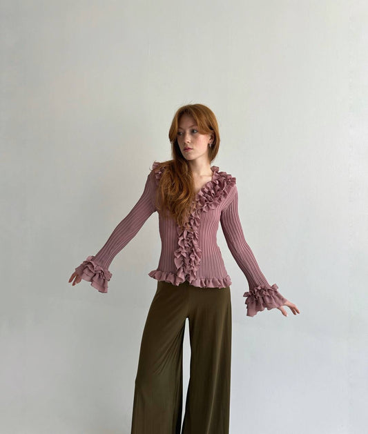 Vintage rose ruffled blouse