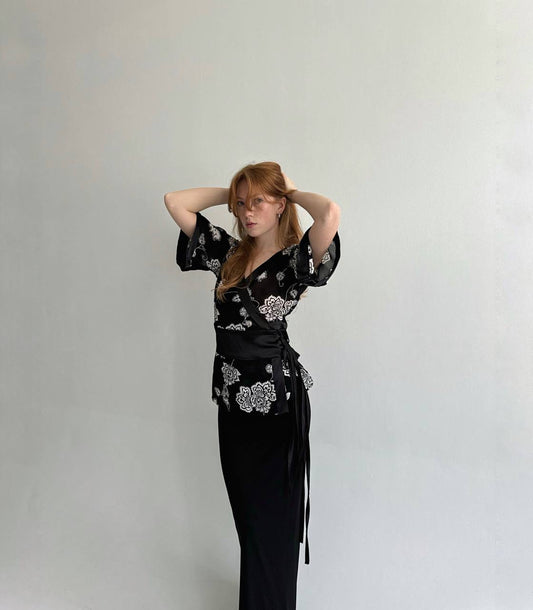 Vintage viscose flower print blouse with side ties