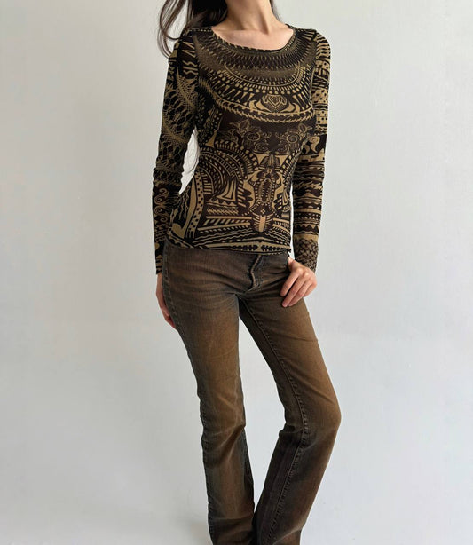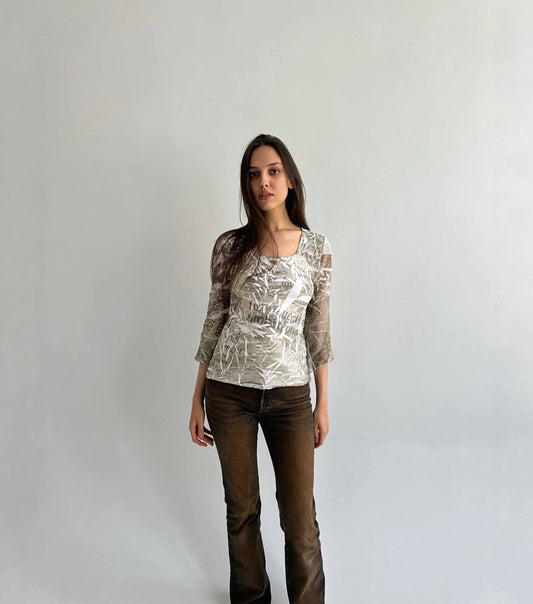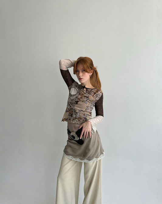 Y2K mesh ornament blouse
