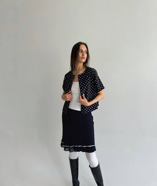 Vintage polka dot navy blouse