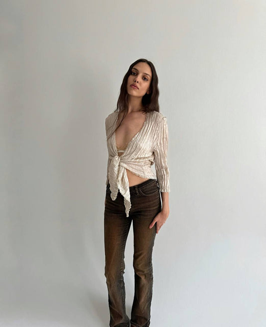 Vintage pleated knot blouse