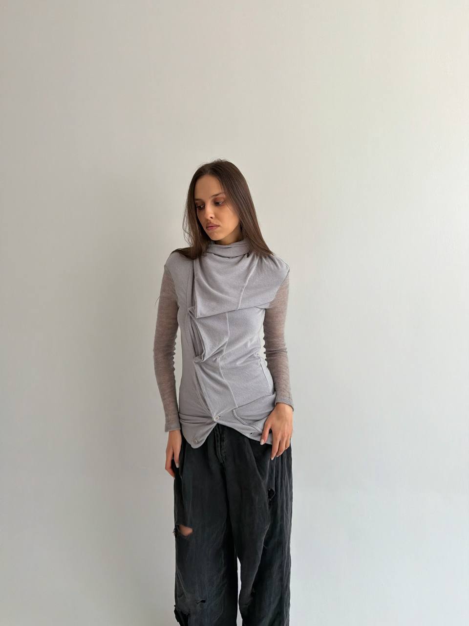 Avant garde asymmetrical Italian cardigan