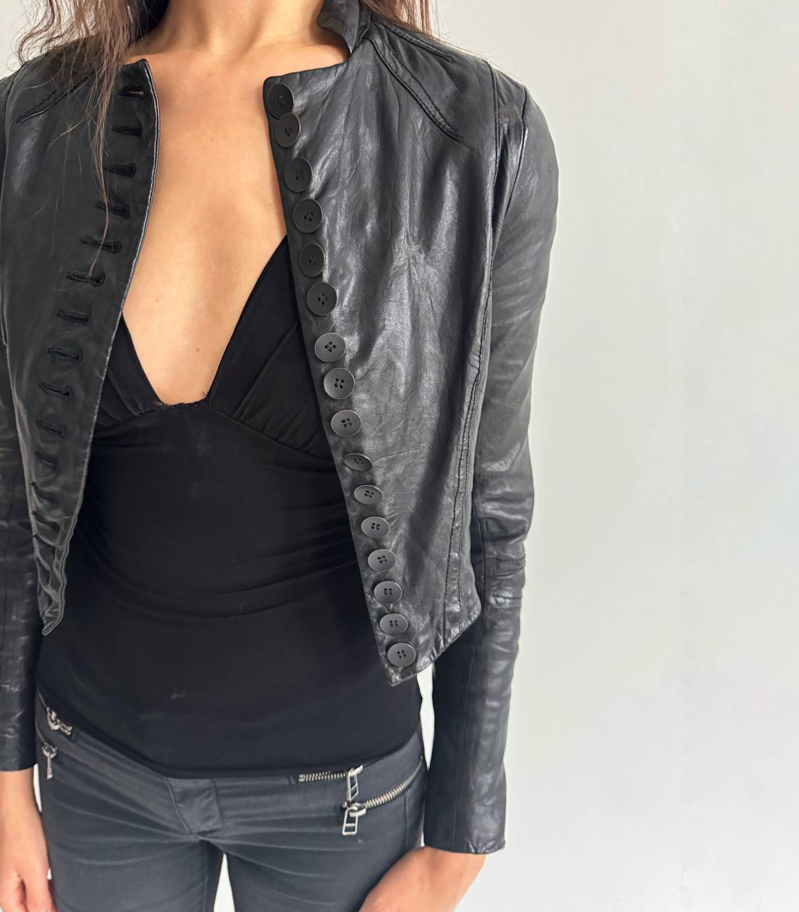 Avant garde All Saint genuine leather black fitted cropped button up jacket