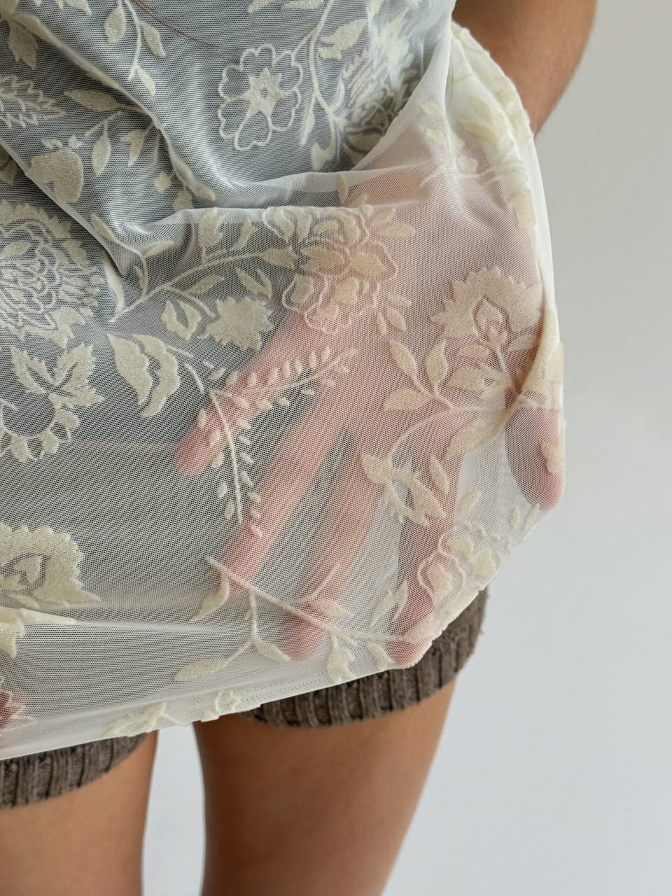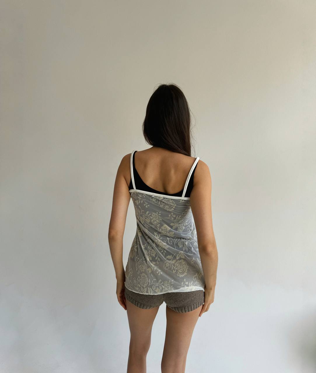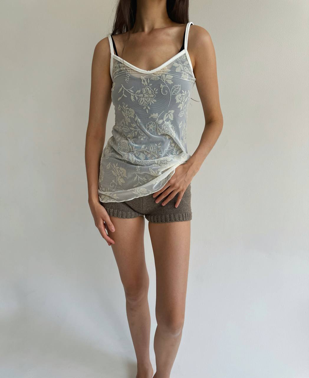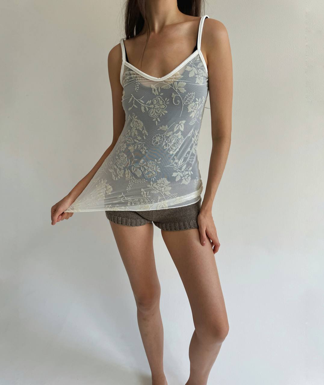 Pierre Cardin mesh transparent milky cami top with velvet print