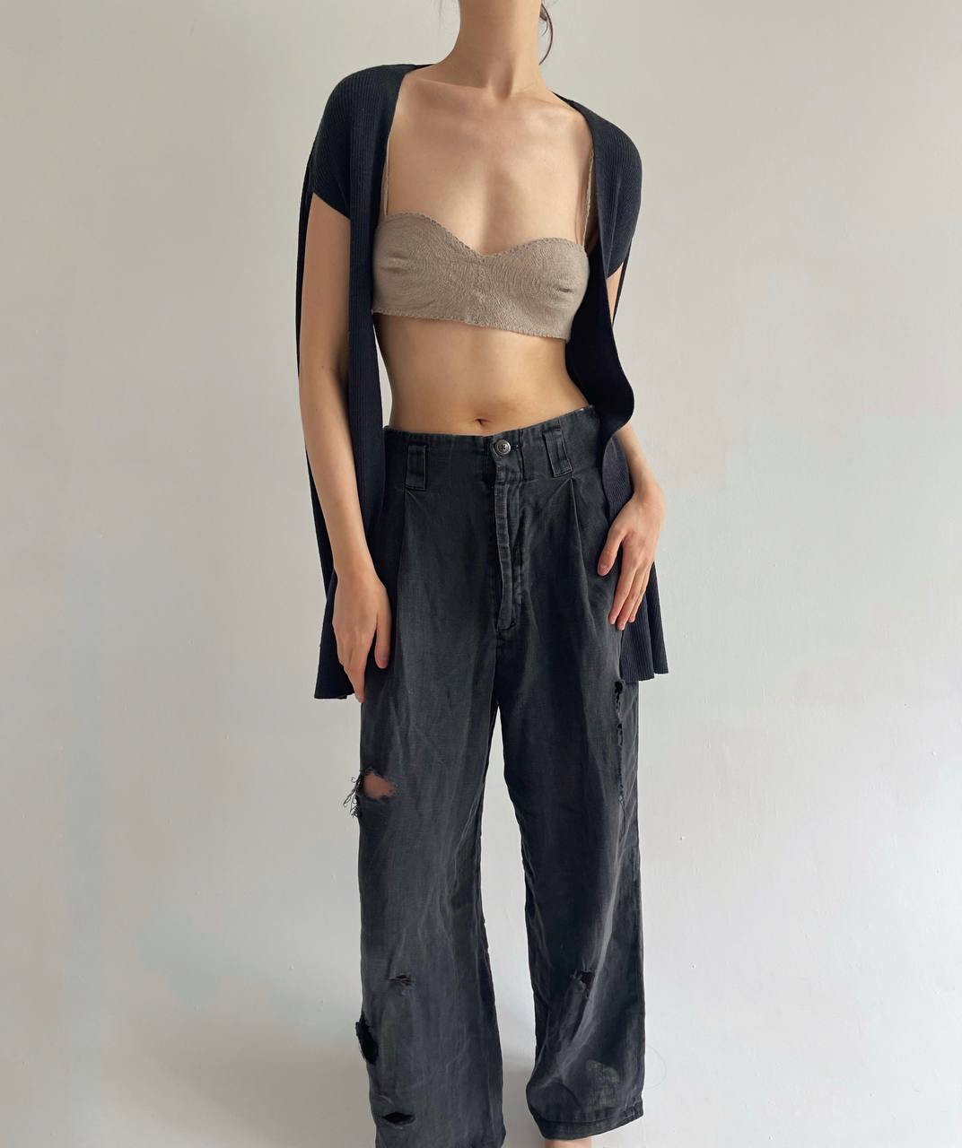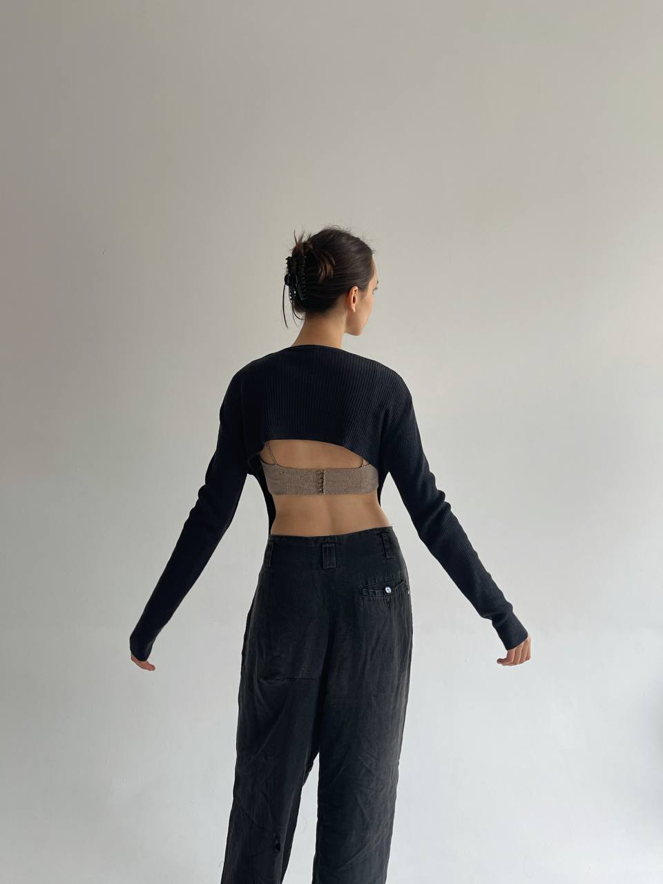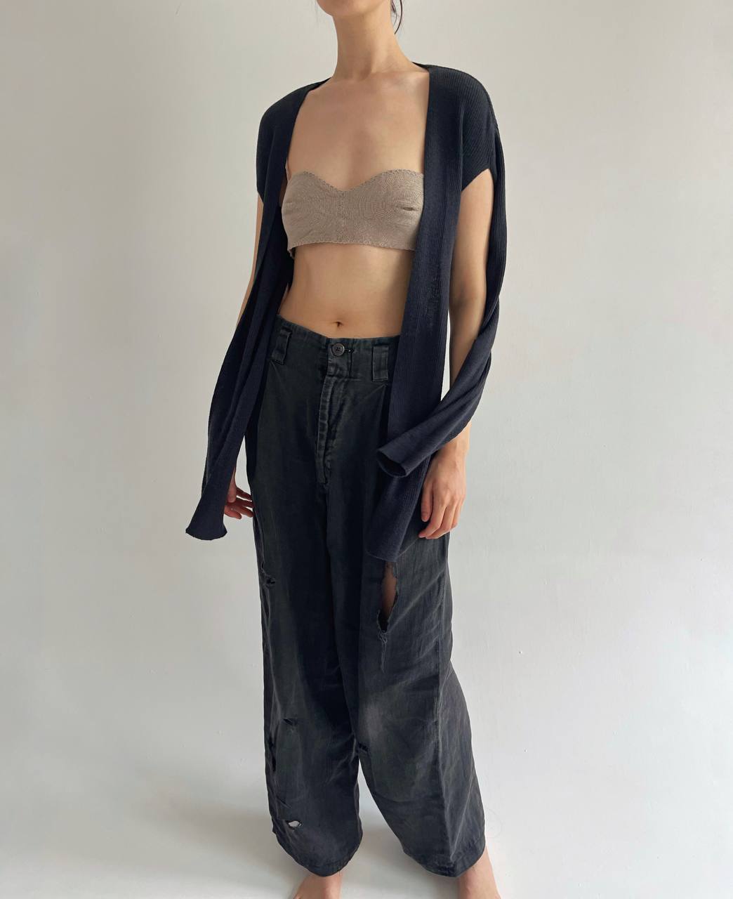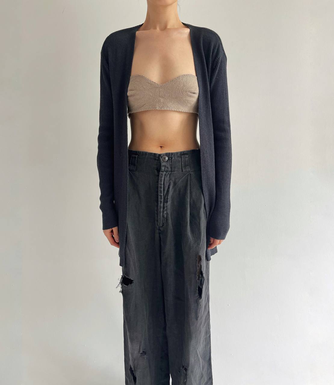 Sarah Pacini dark fade navy deconstructed ribbed cardigan which you can wear different ways made of 50% wool