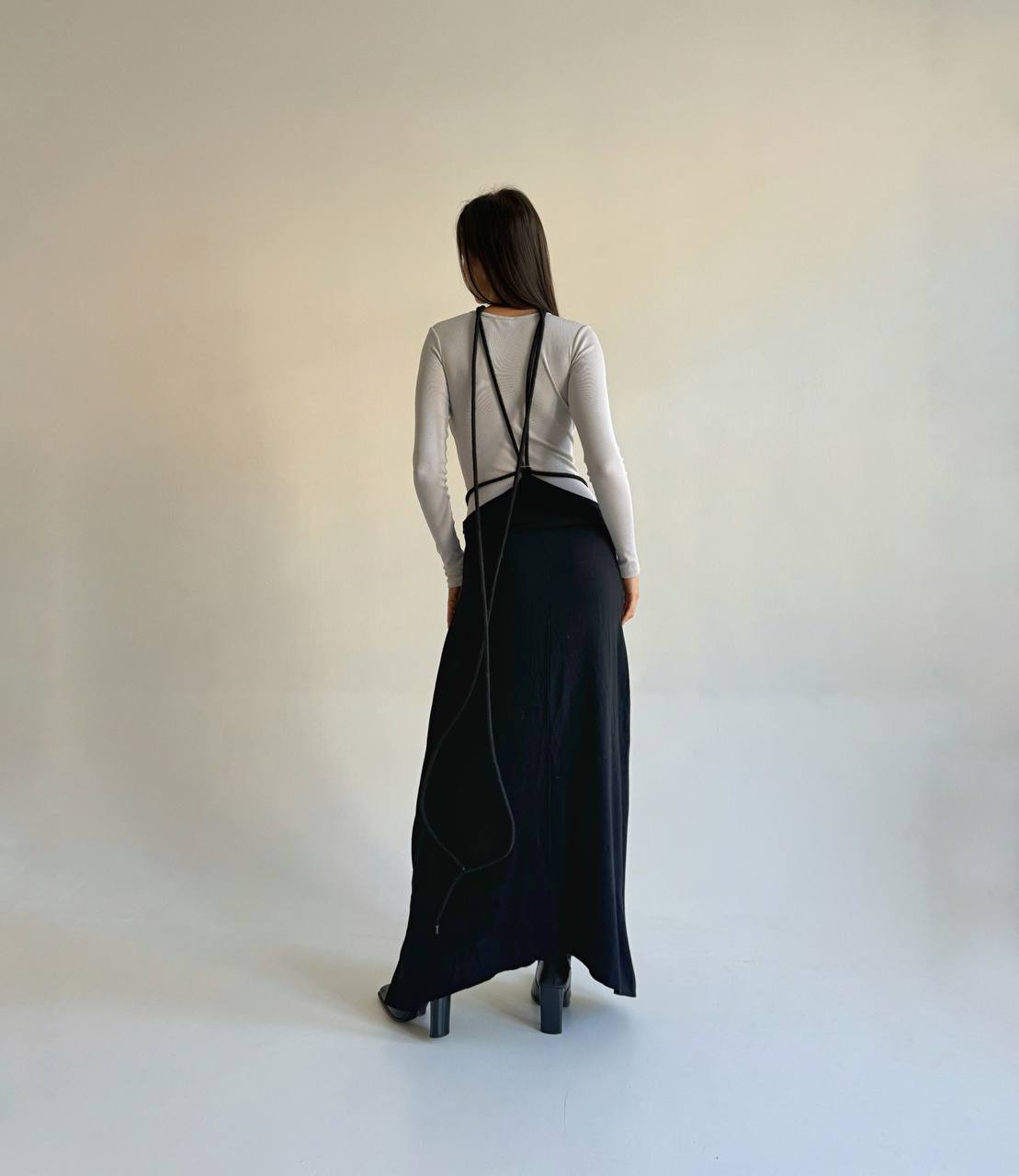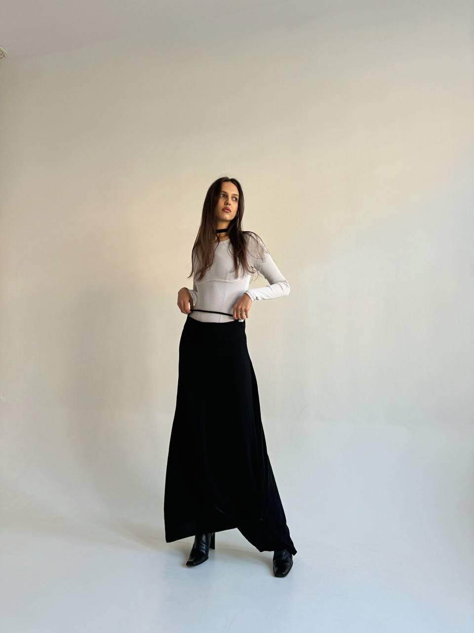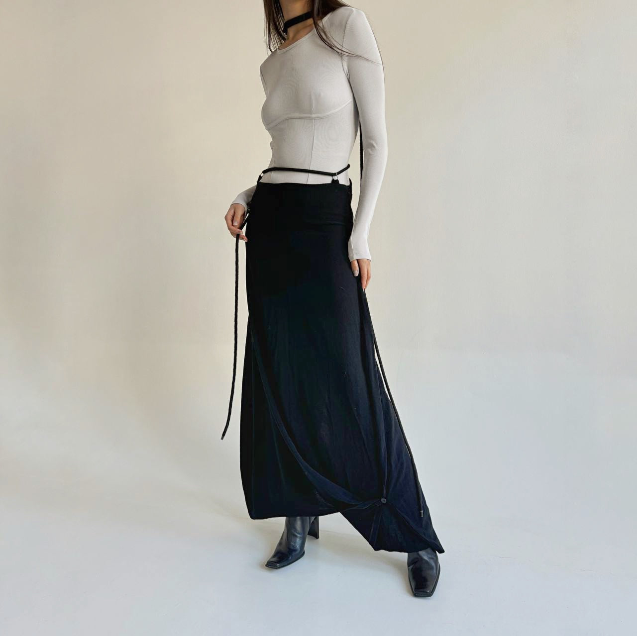 Sarah Pacini 48% viscose 17% wool black maxi avant garde skirt