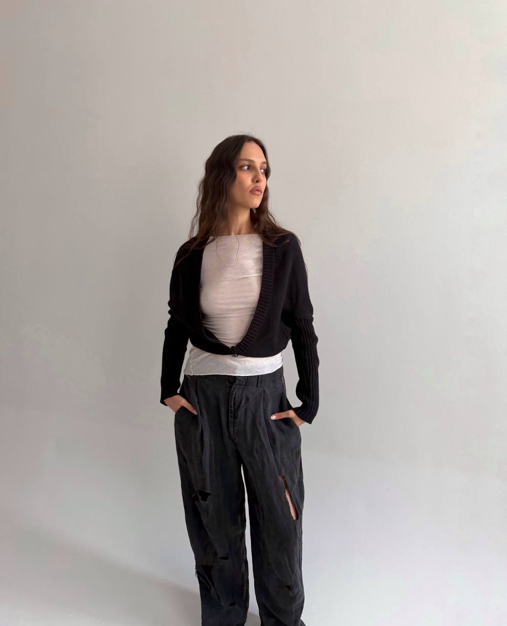 French brand Sisley 100% cotton black cardigan