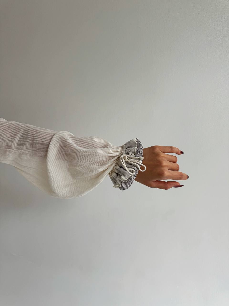Sportmax 50% pure silk 50% cotton milky blouse with silk pastel purple ruffles and gathered front with a bow