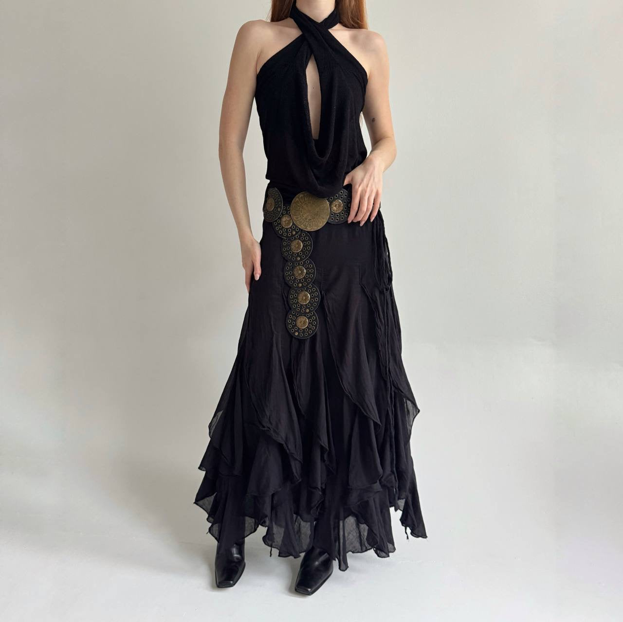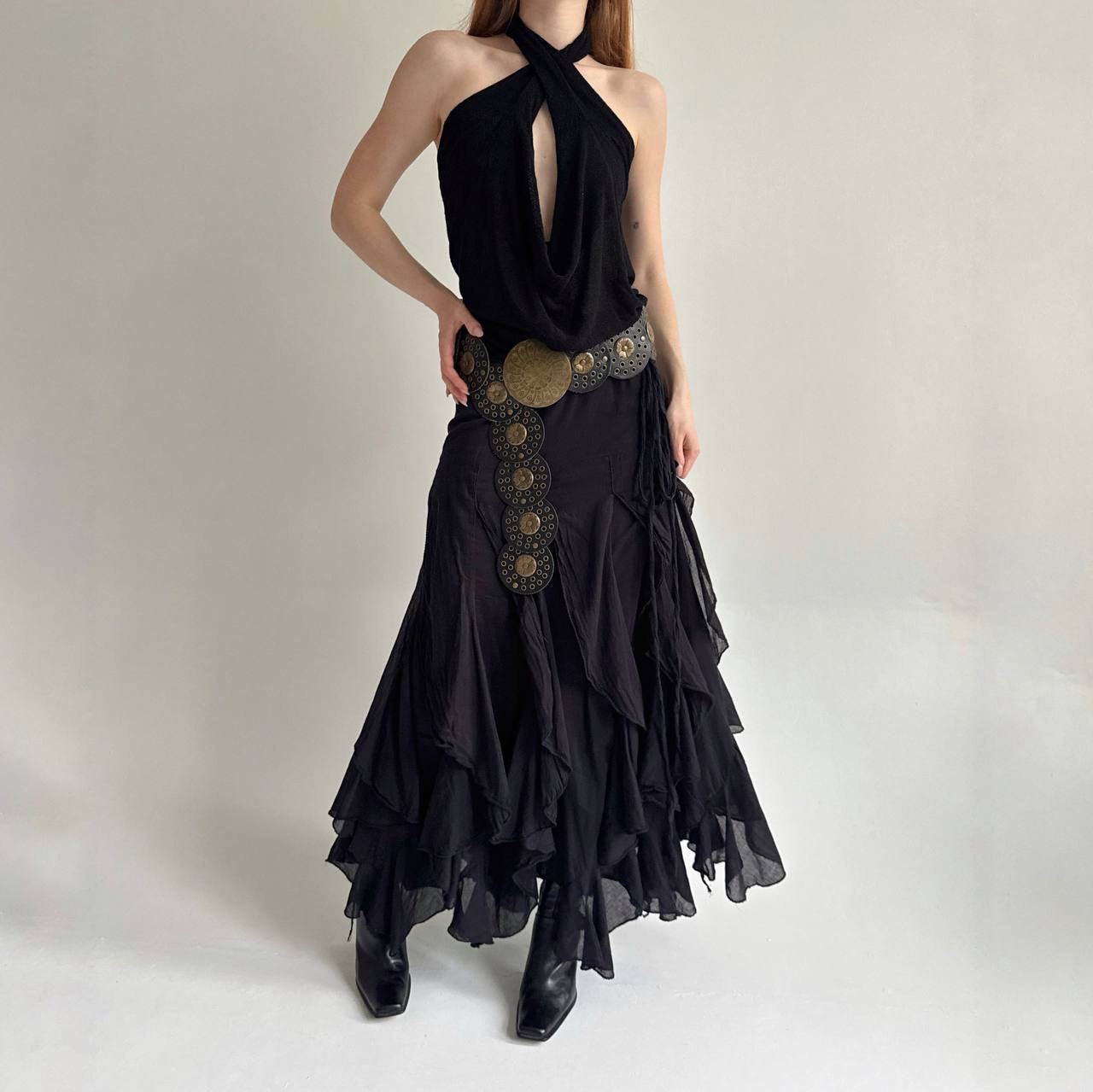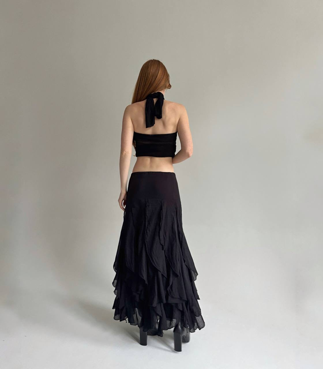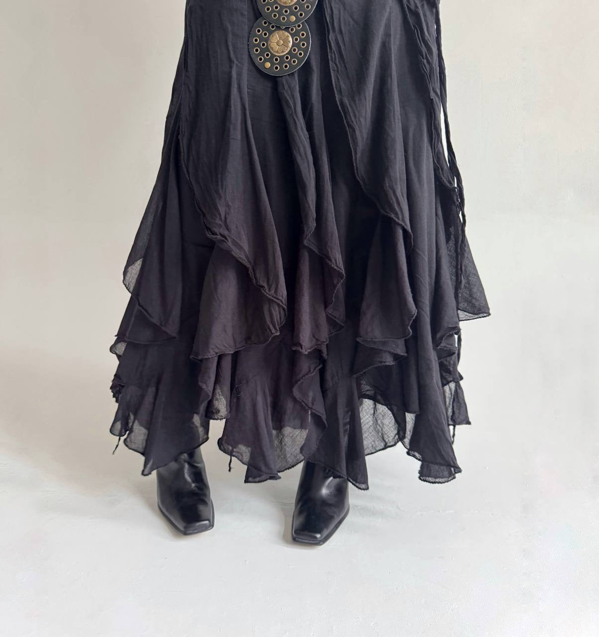 Vintage cotton black ruffled maxi skirt