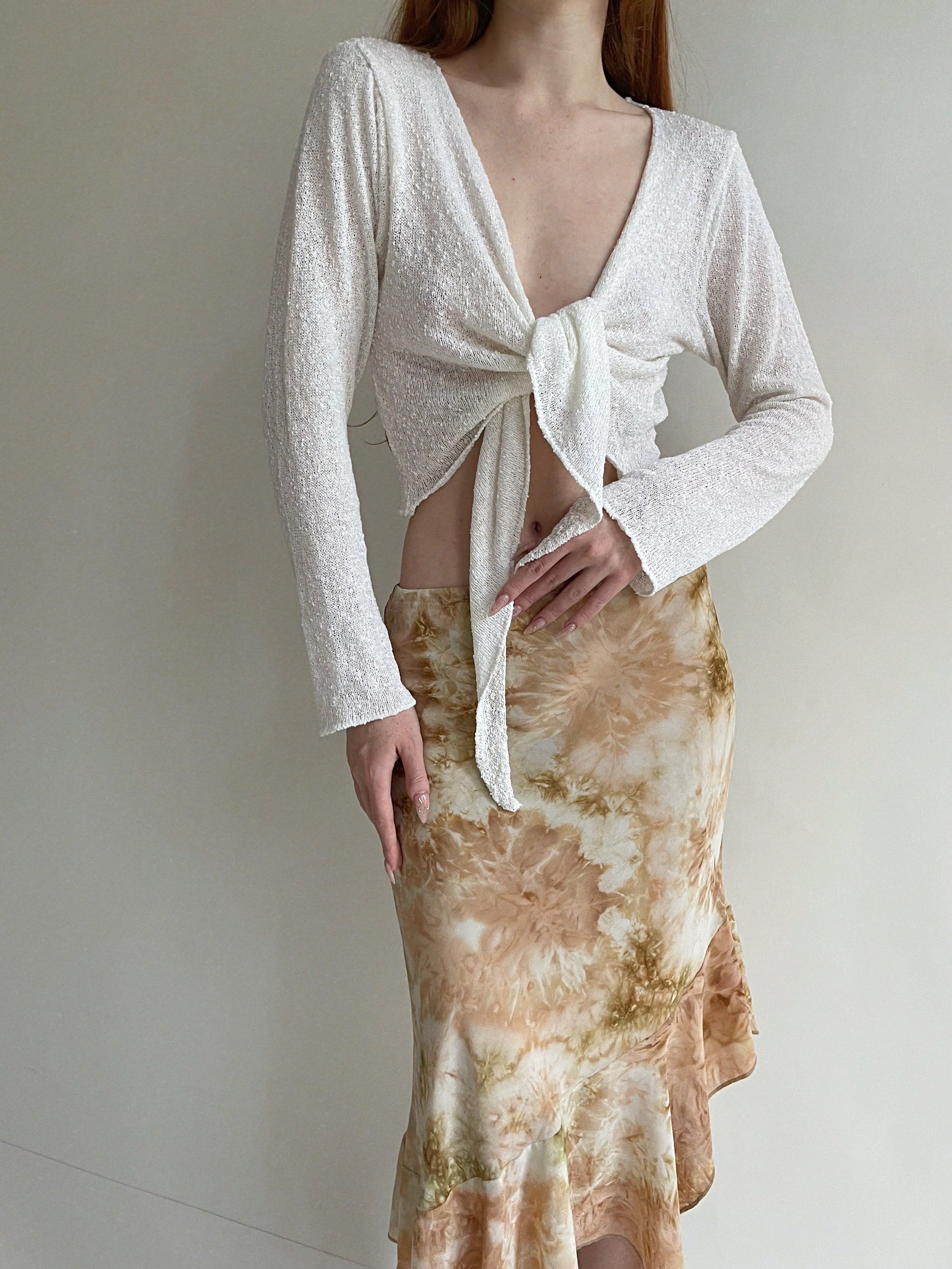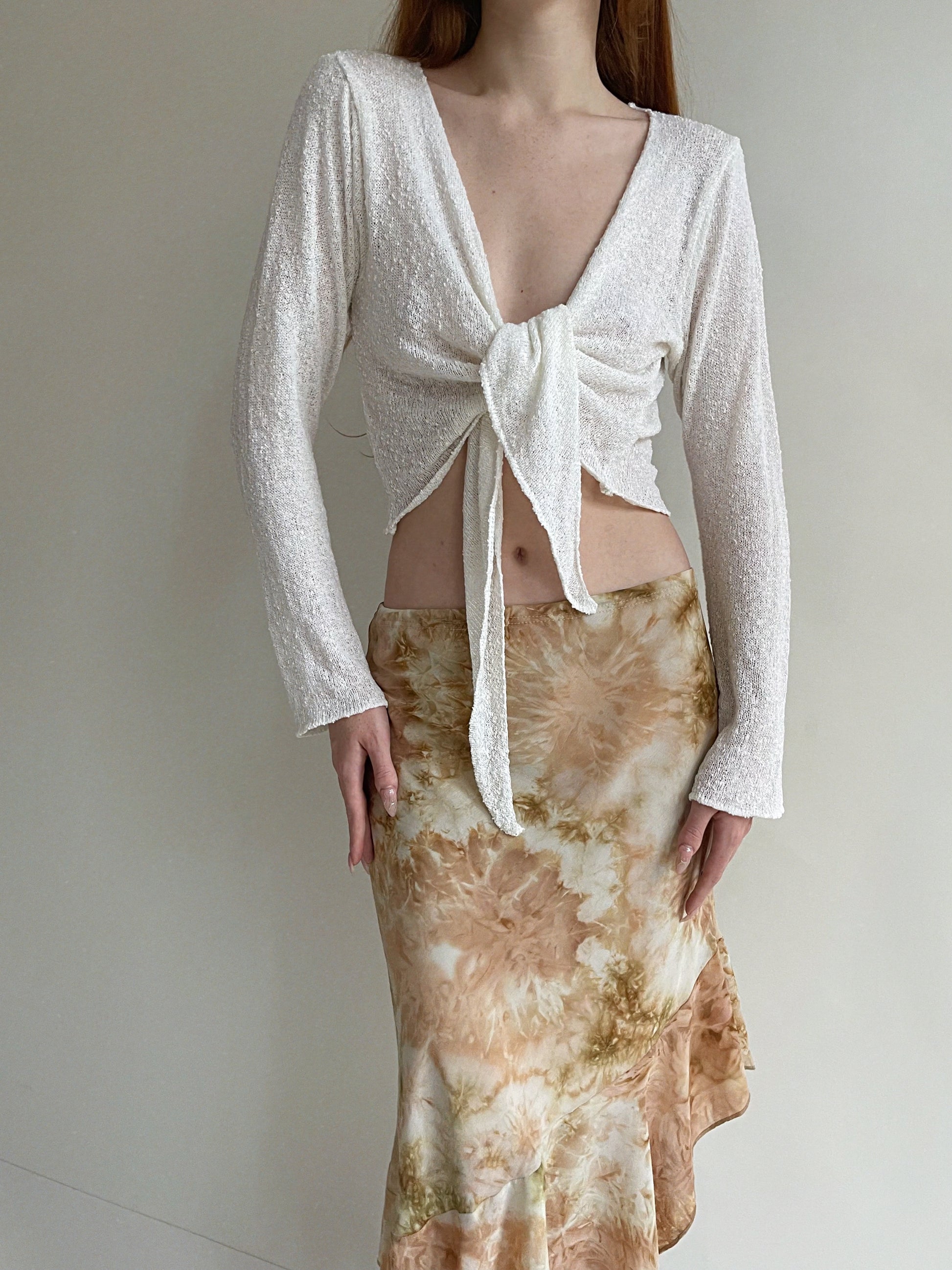 Vintage 50% rayon hand made in Indonesia white wrap top