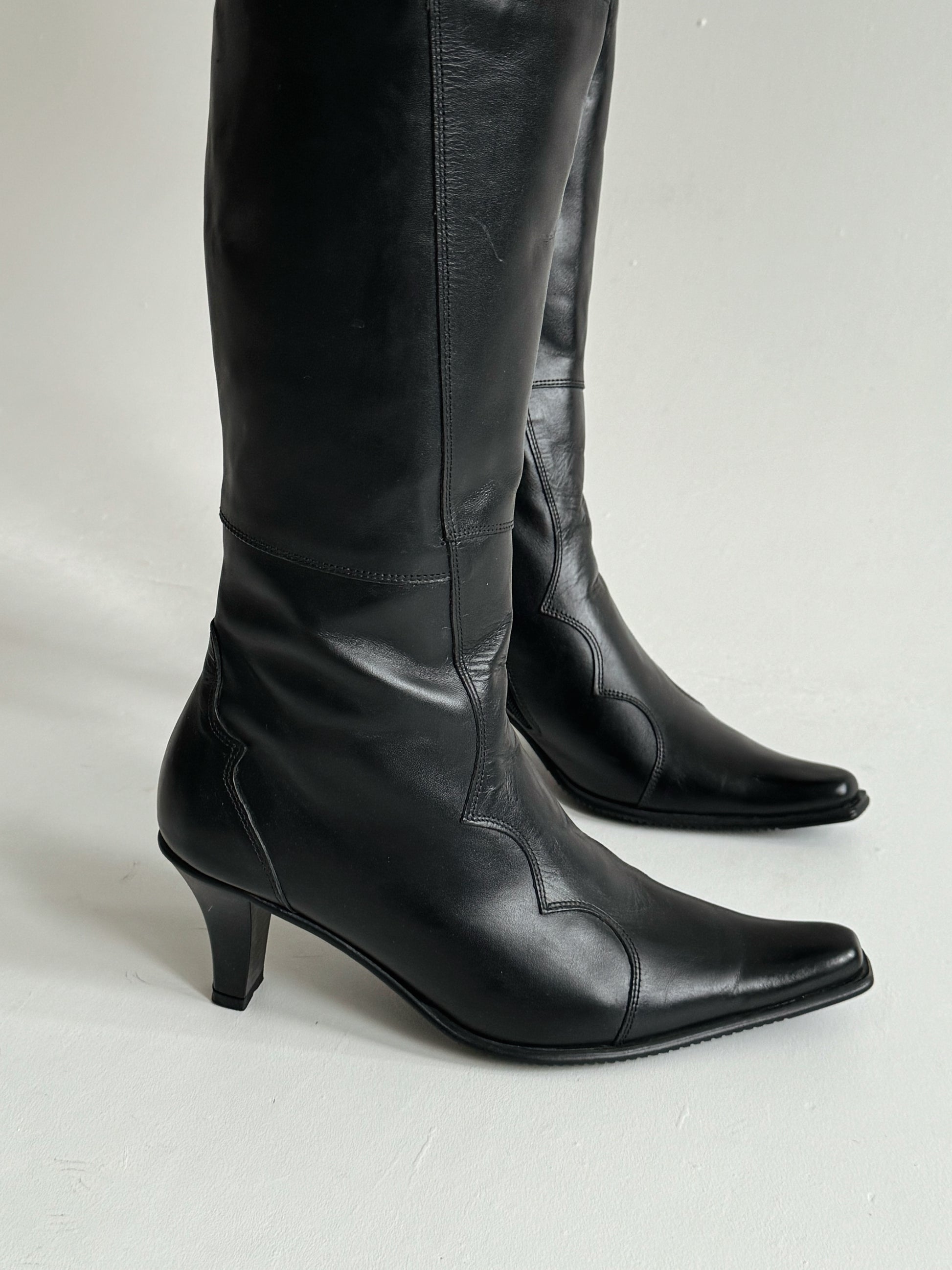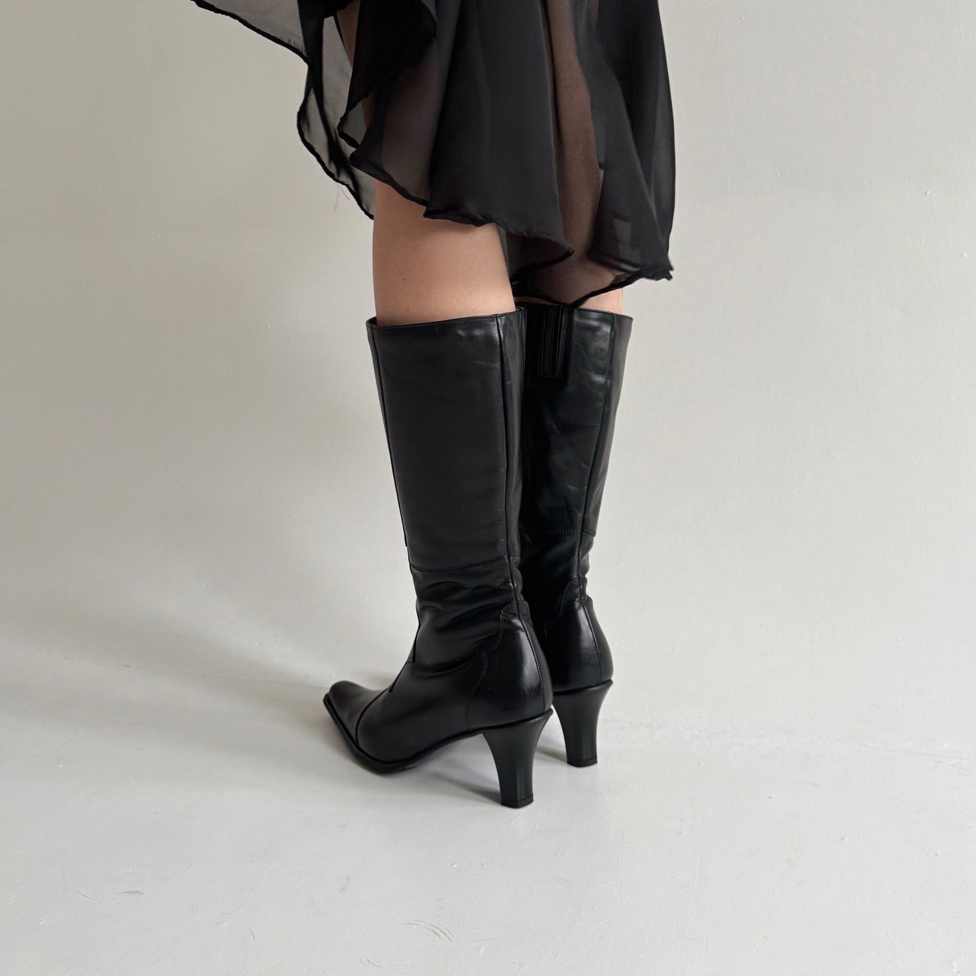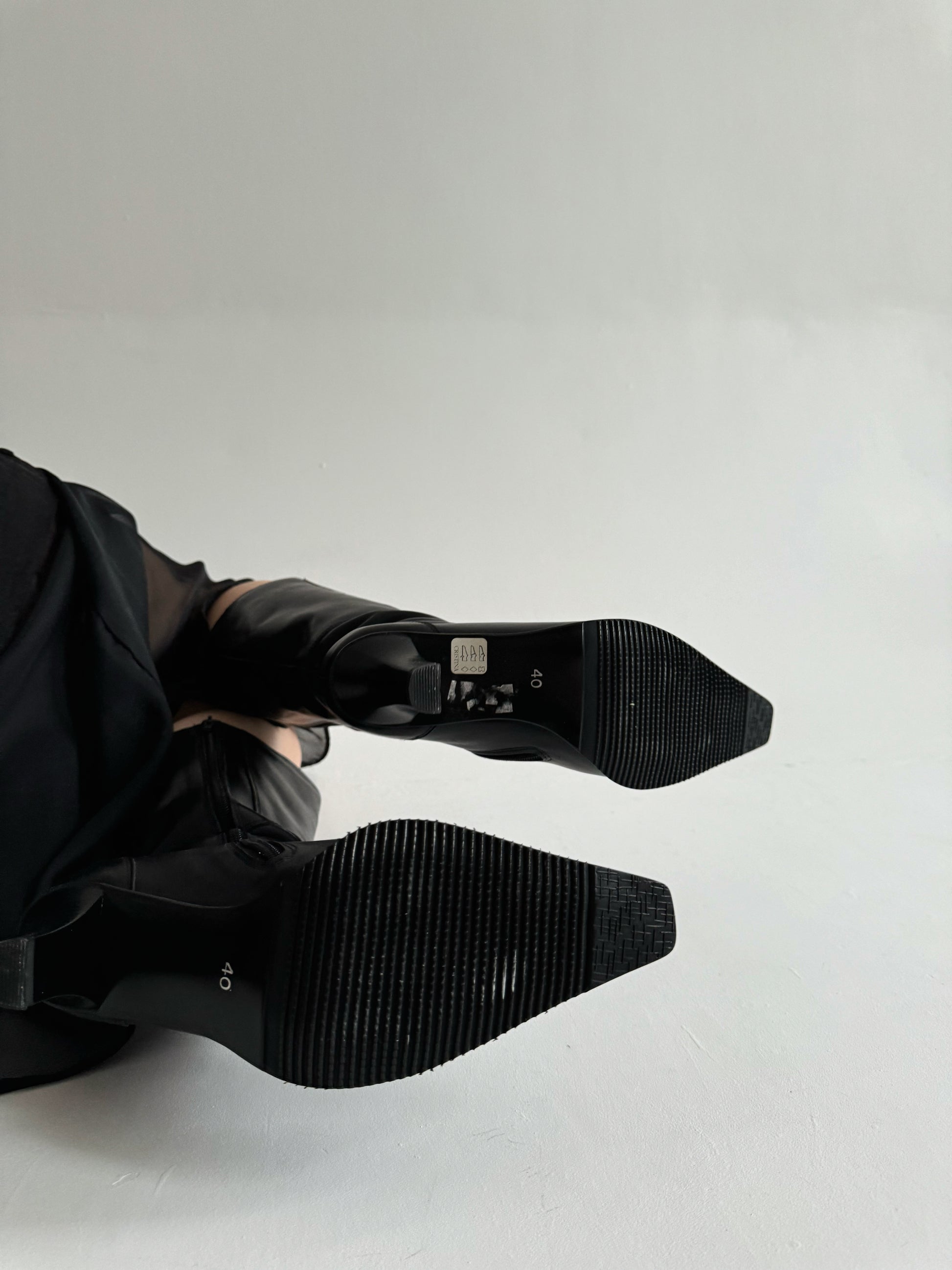 Vintage black boots, parts made of genuine leather, parts of faux leather