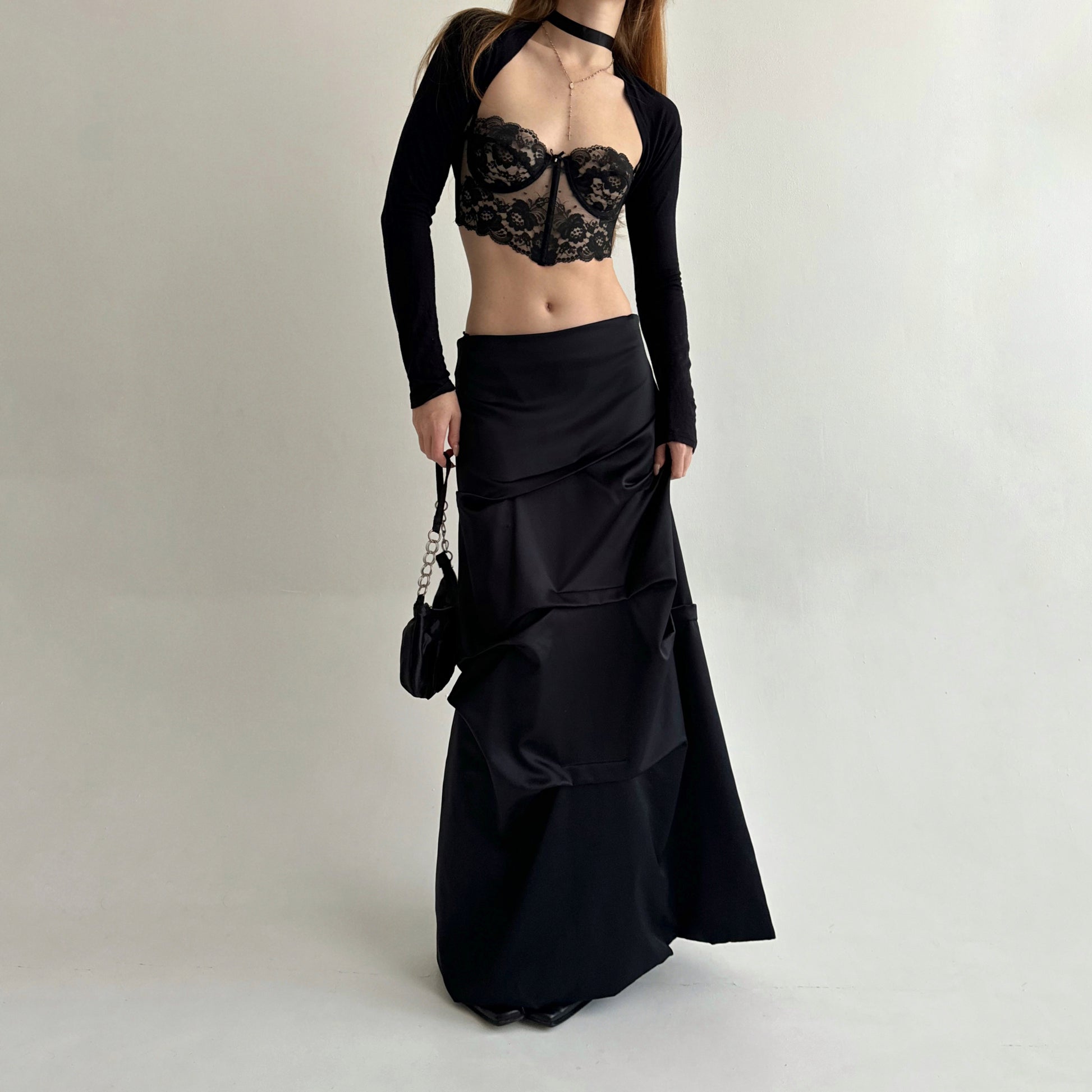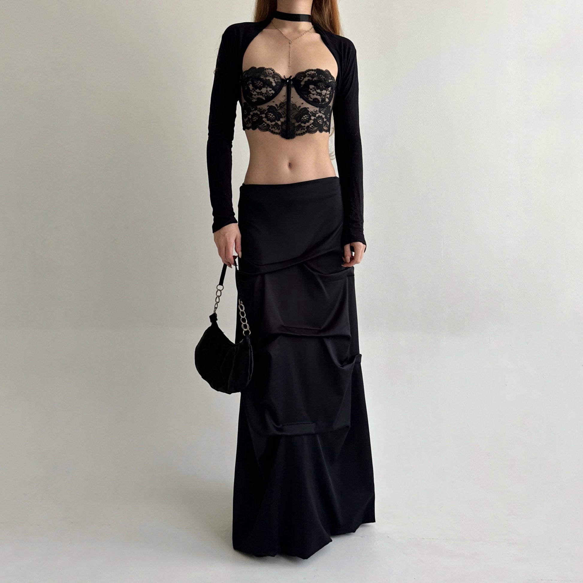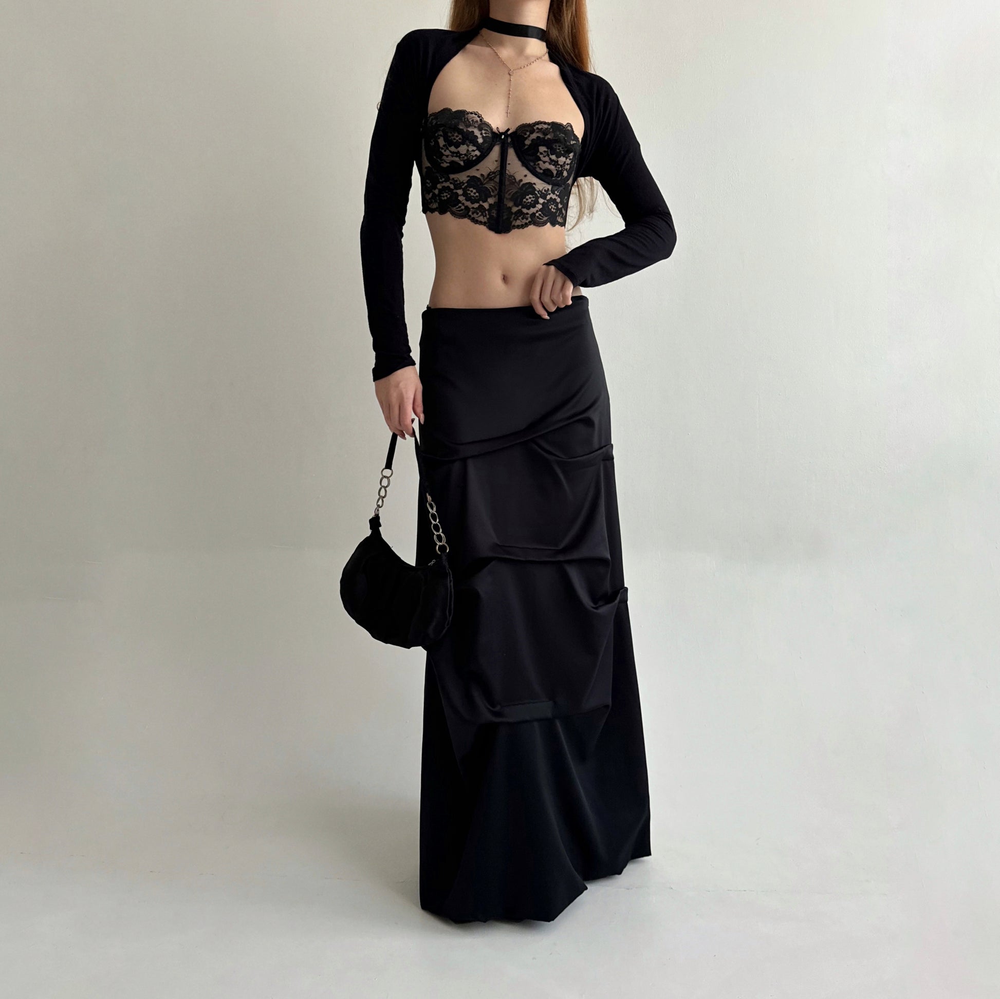 Vintage black maxi skirt with beautifully crinkled fabric