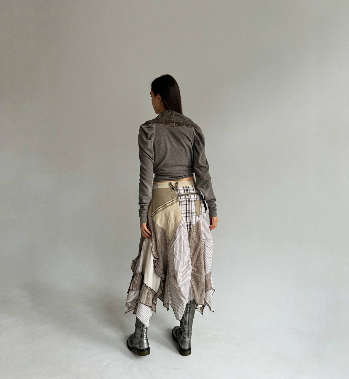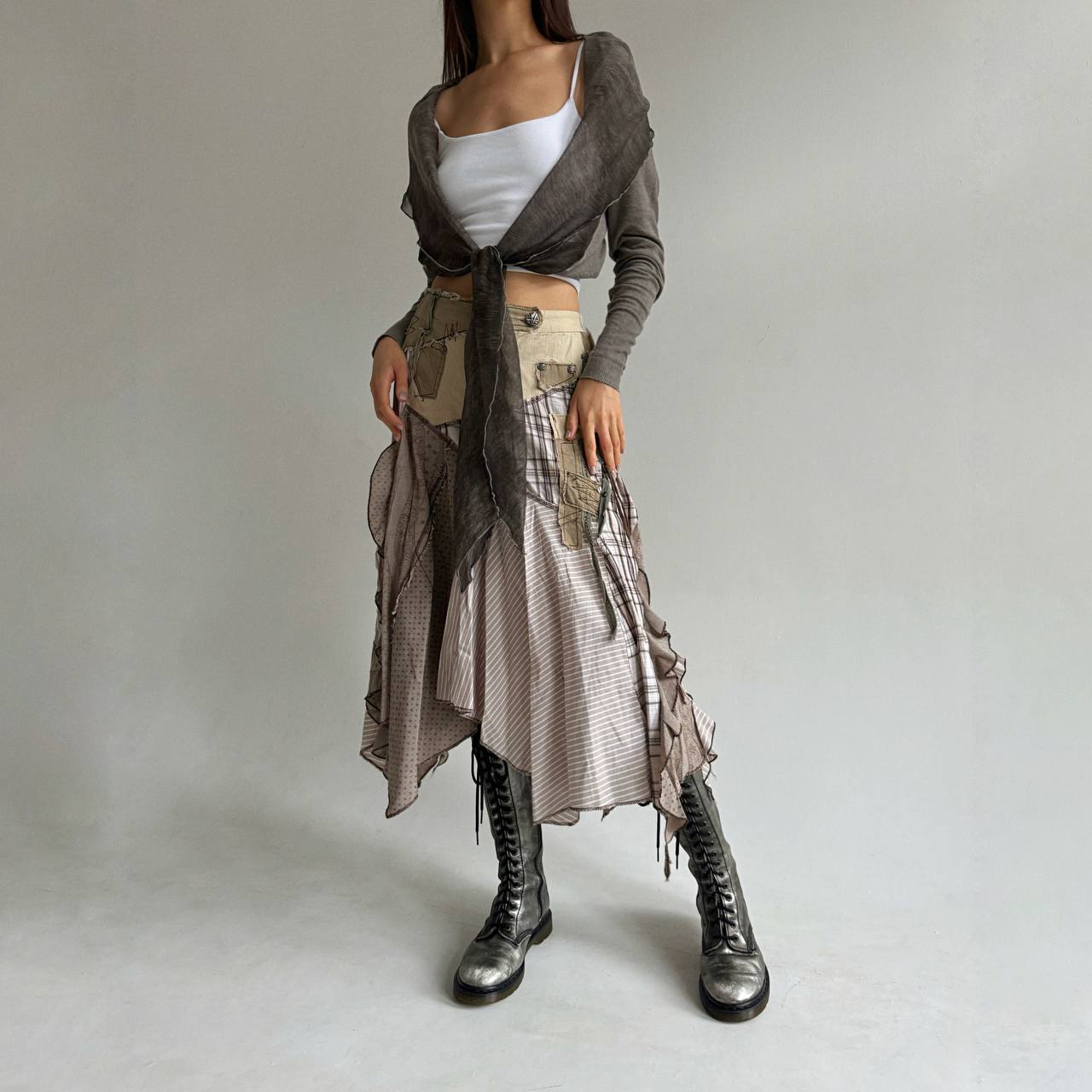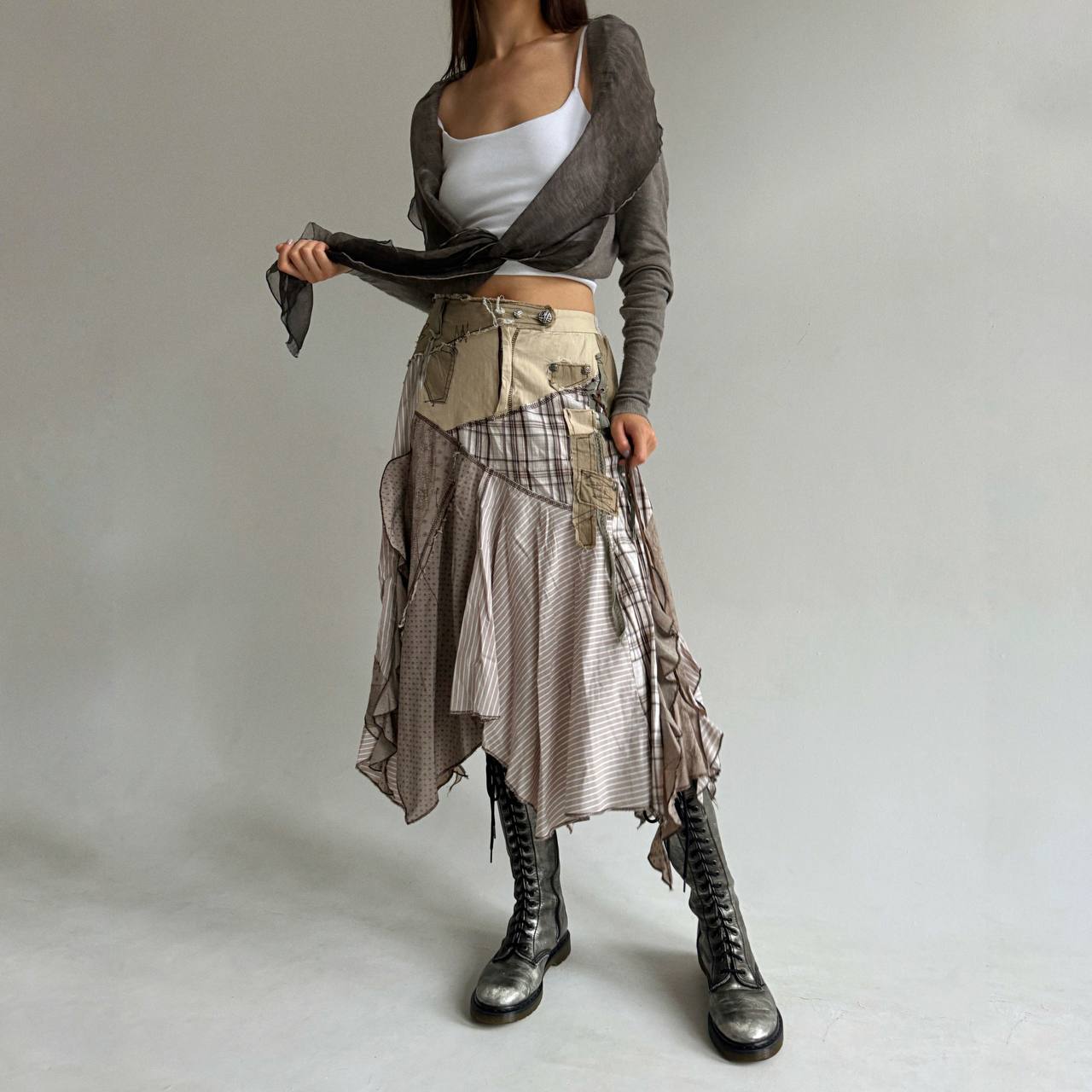 Vintage deconstructed cotton patchwork asymmetrical maxi skirt
