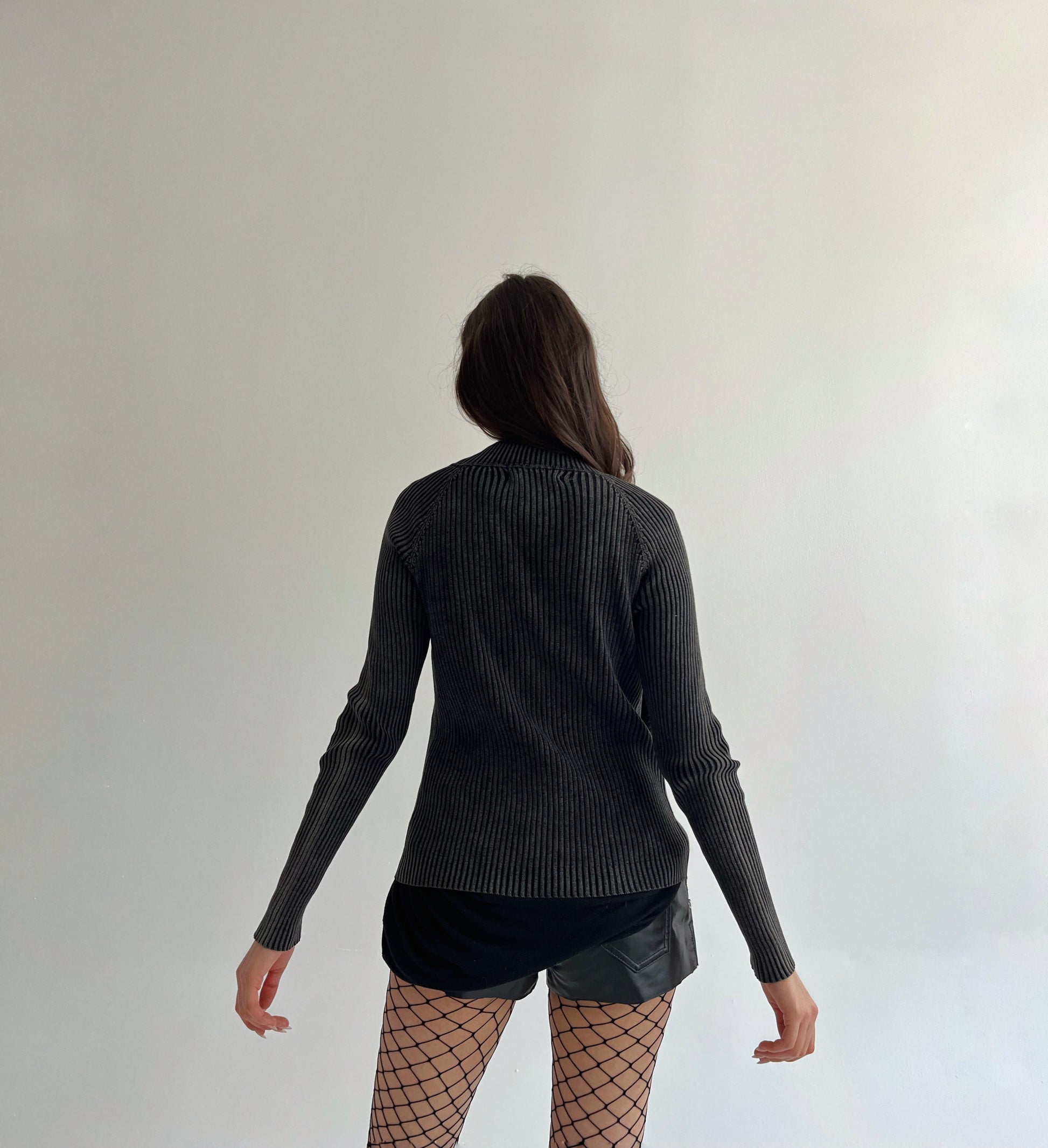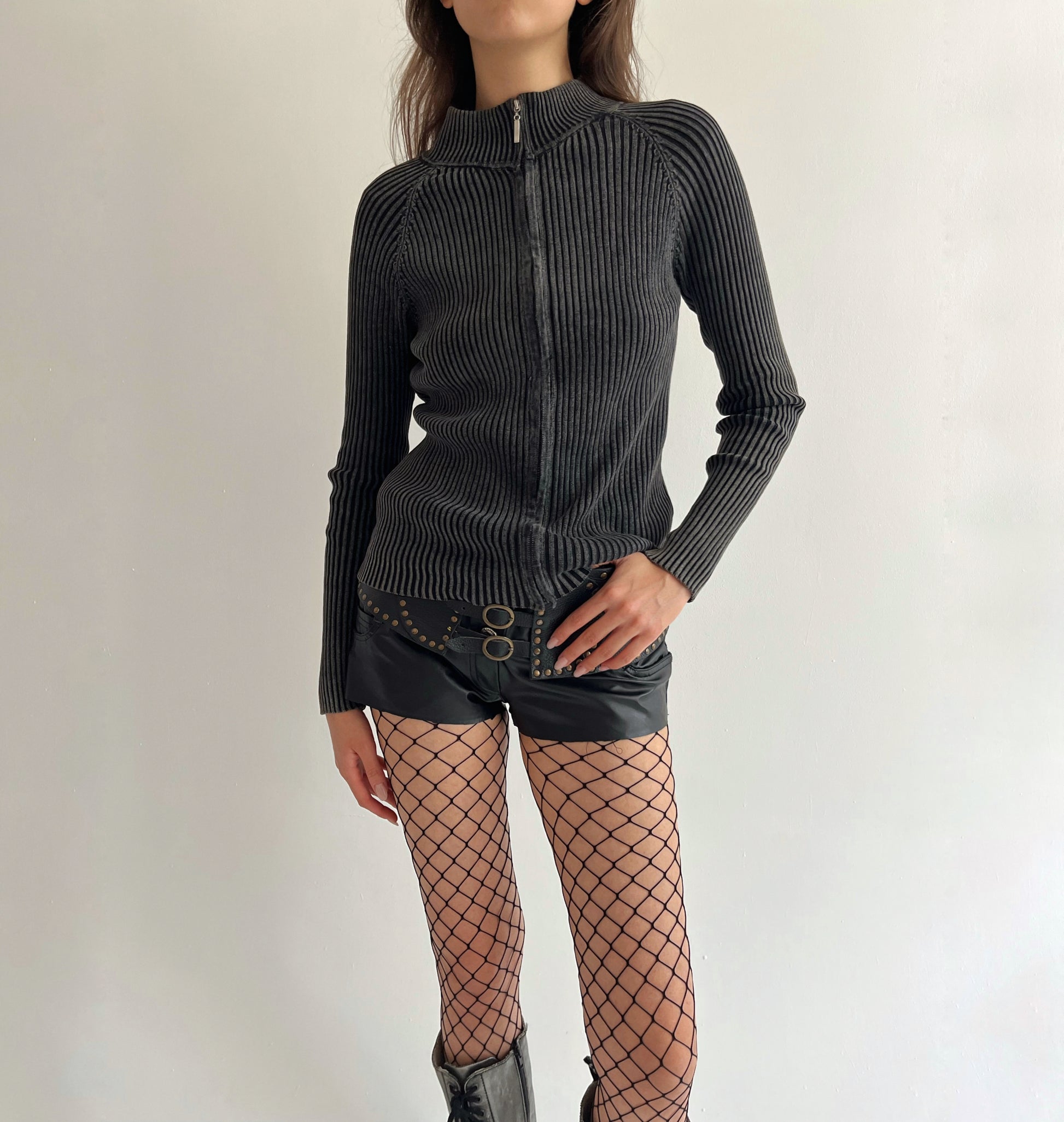 Vintage cotton opium distressed washed ripped grey zip knitted blouse