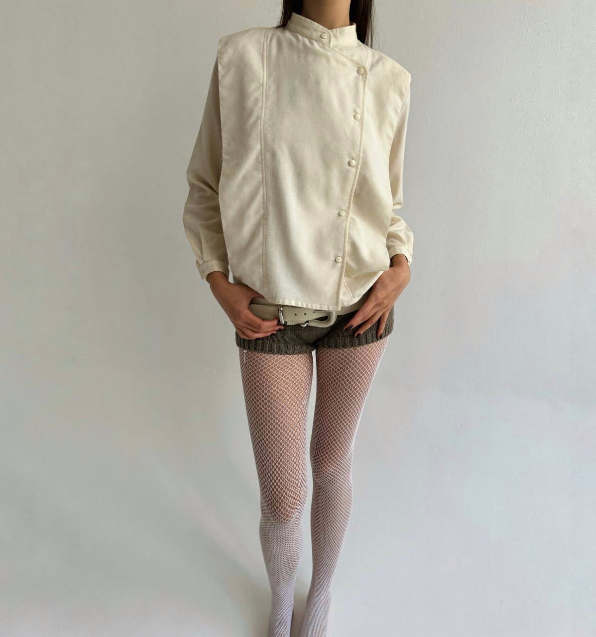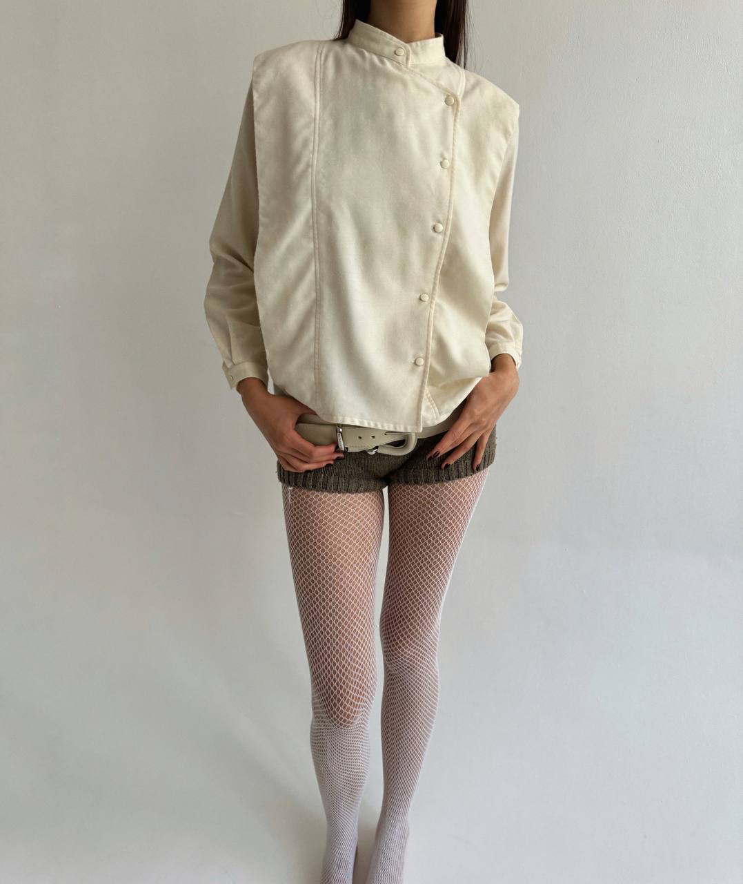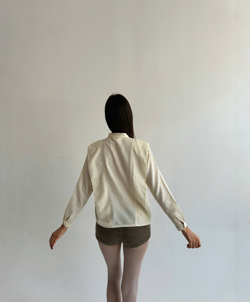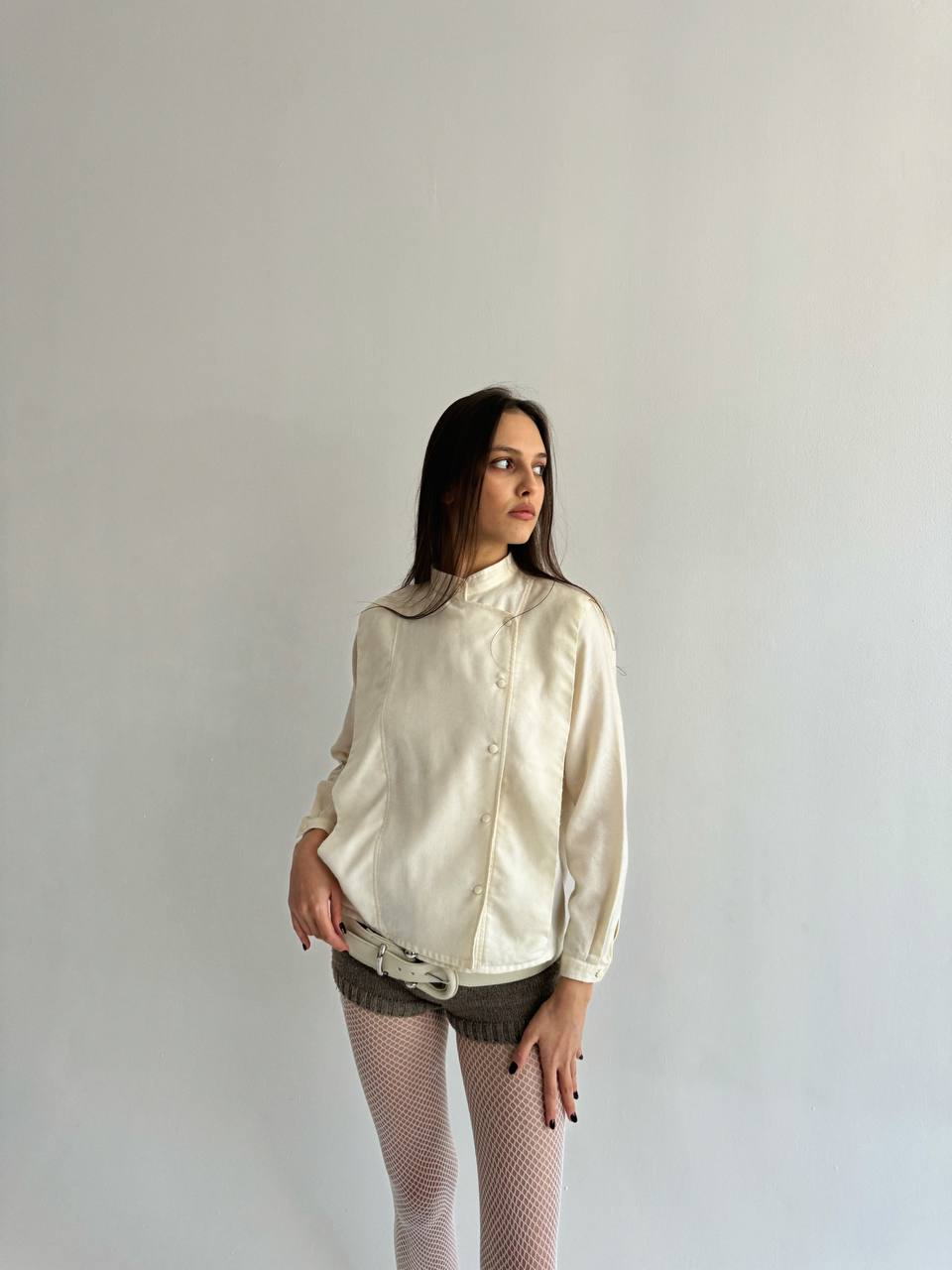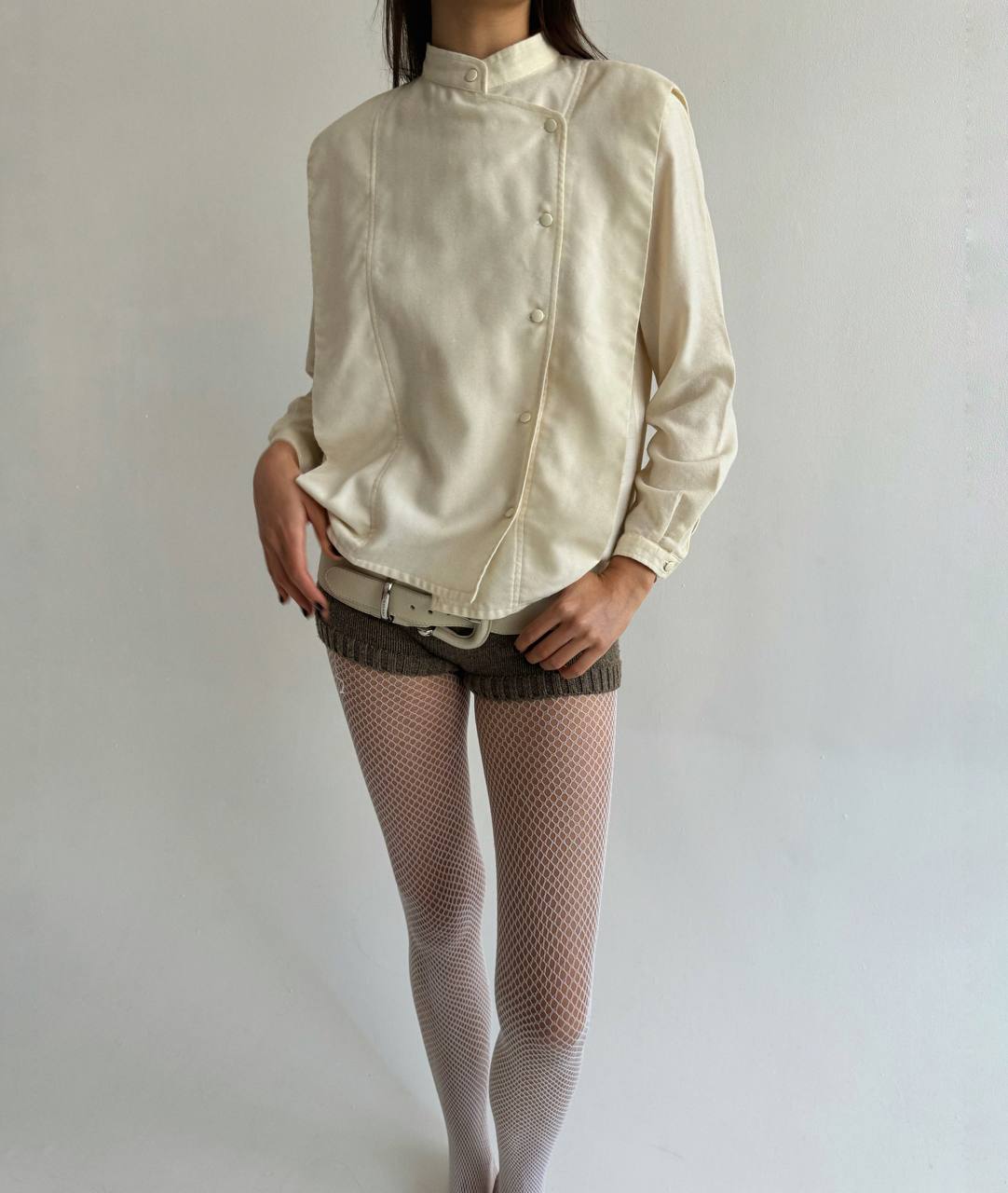Vintage Courreges beige 60% wool avant garde side button up closure blouse