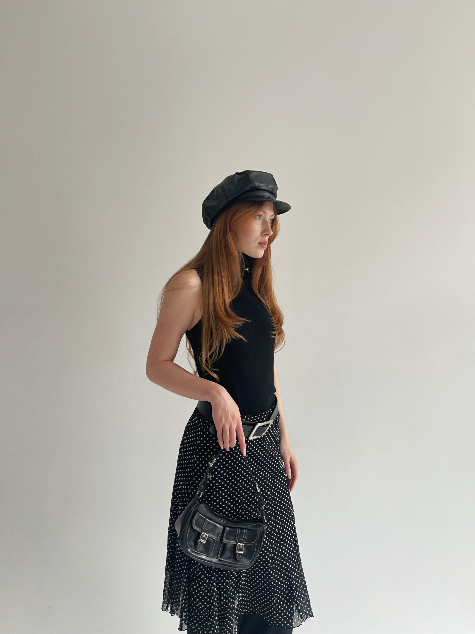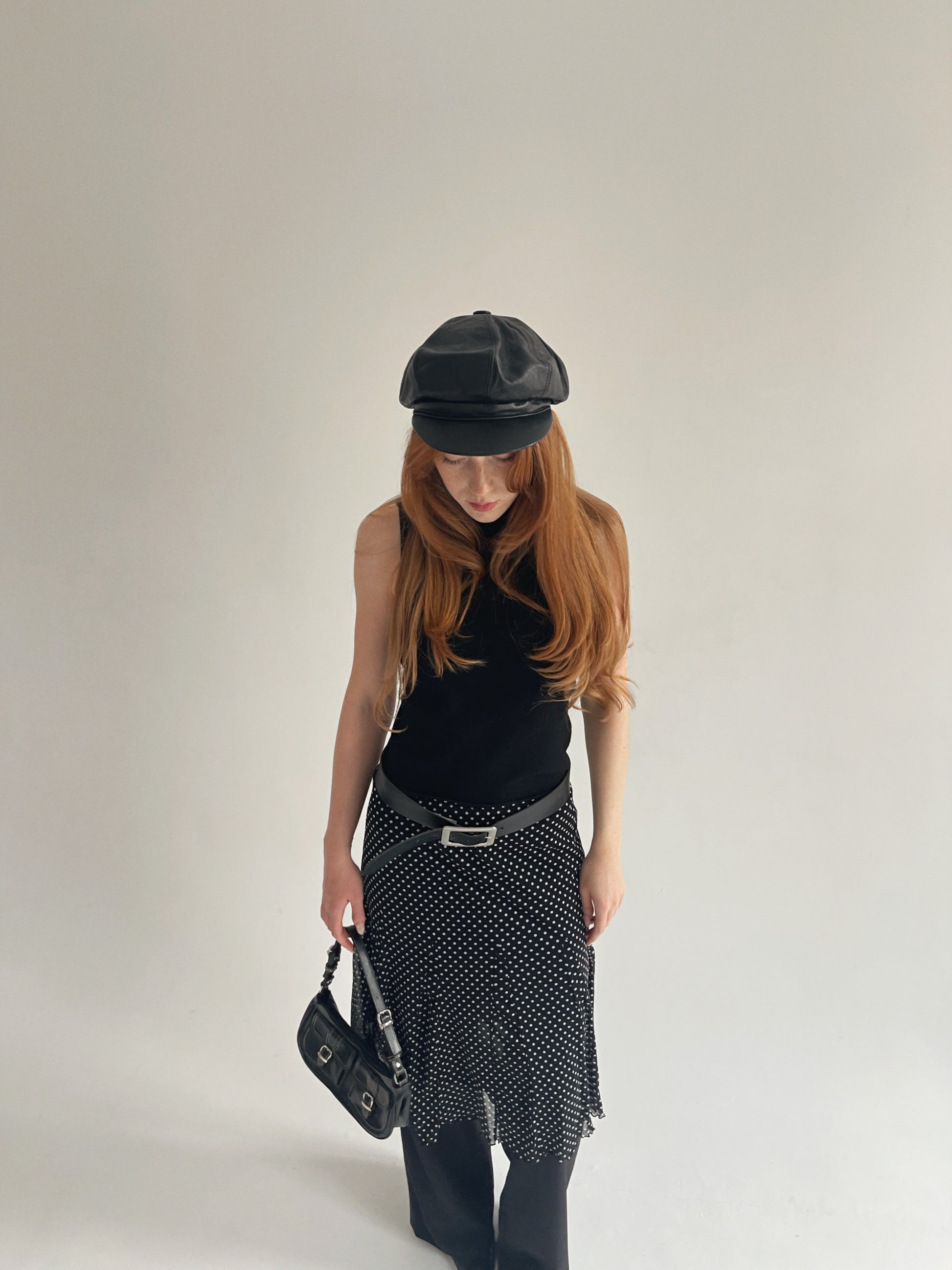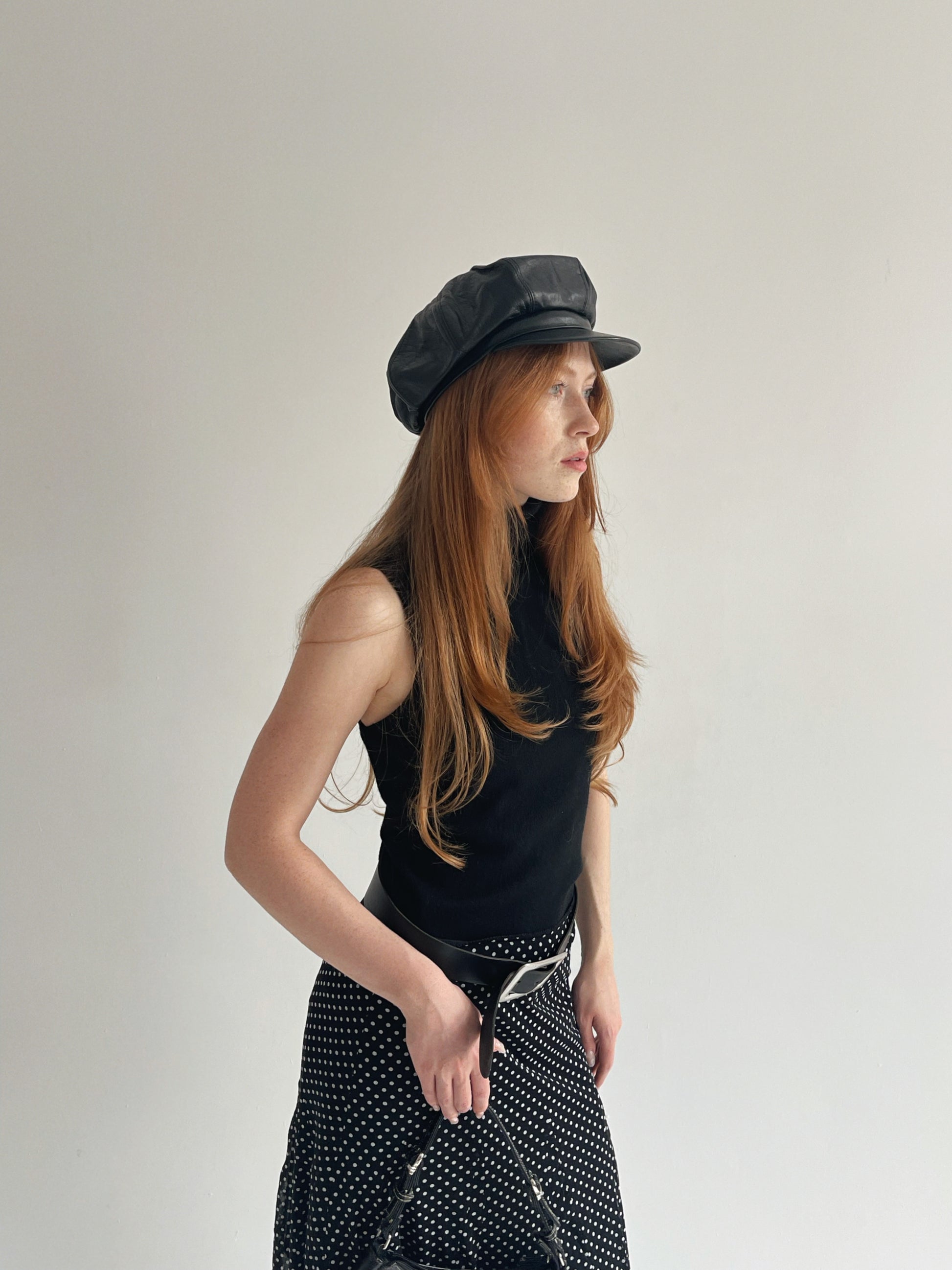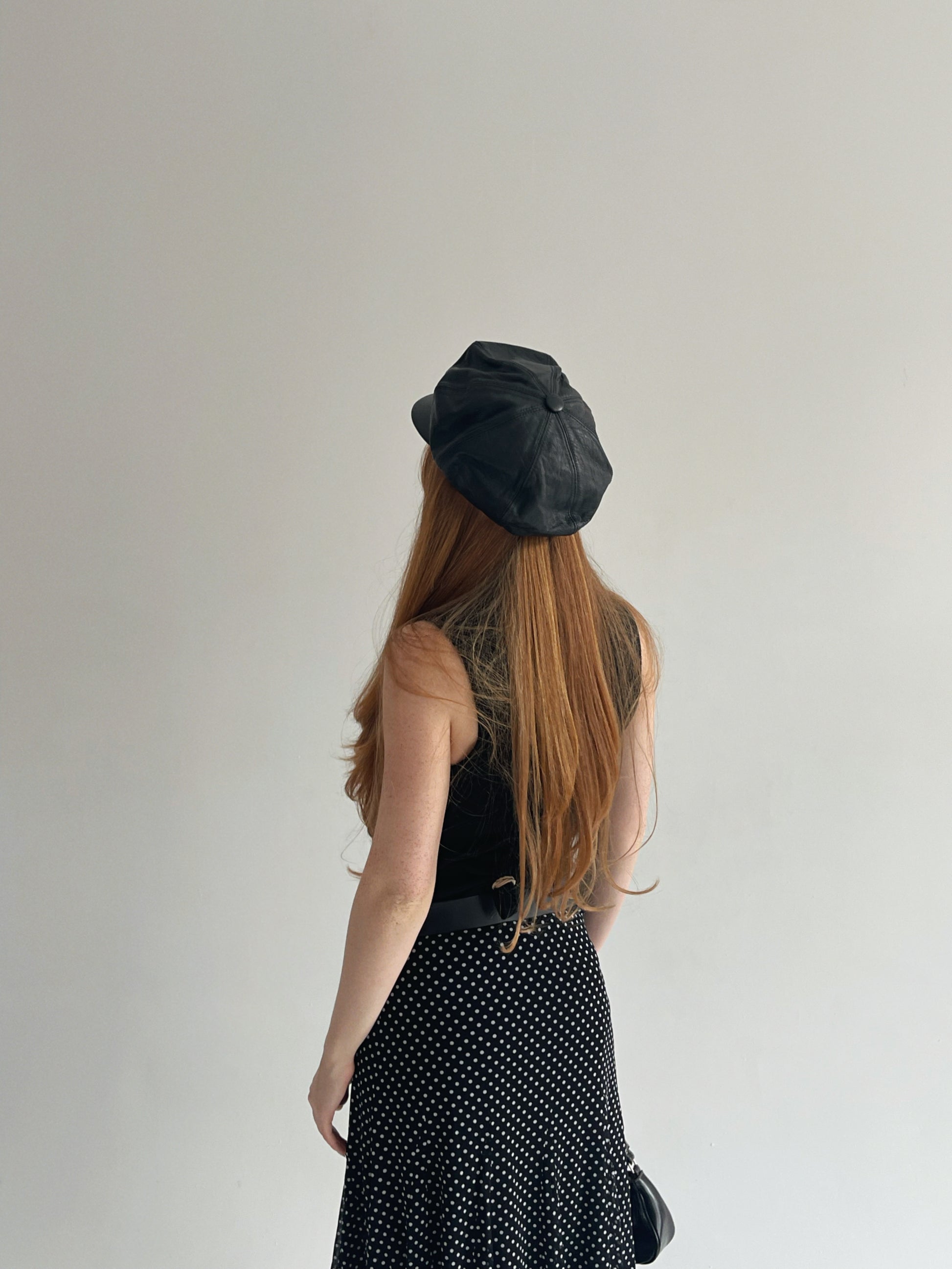 Vintage genuine leather black newsboy cap