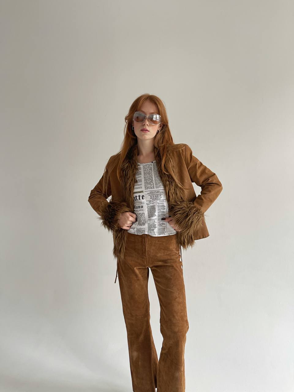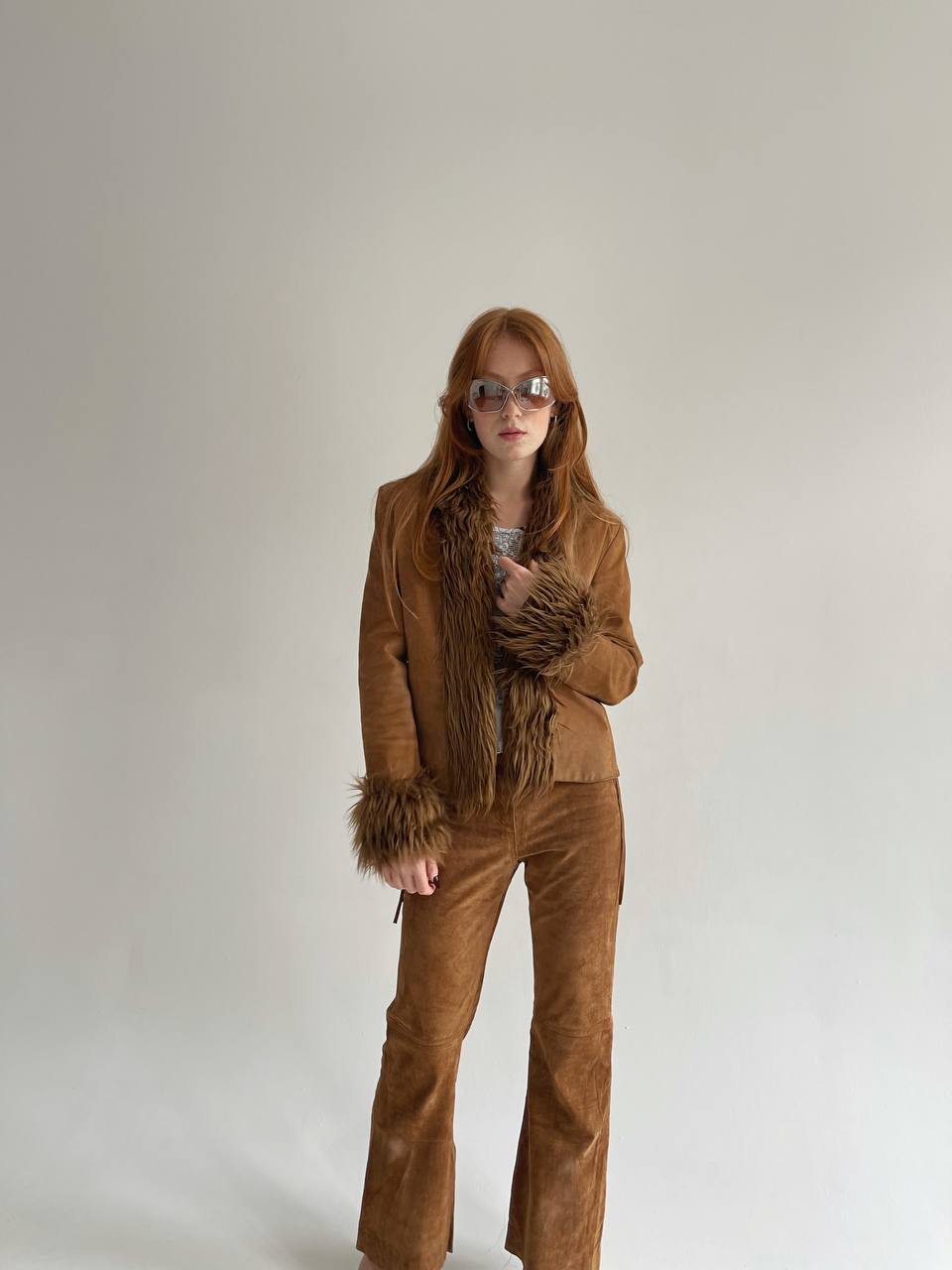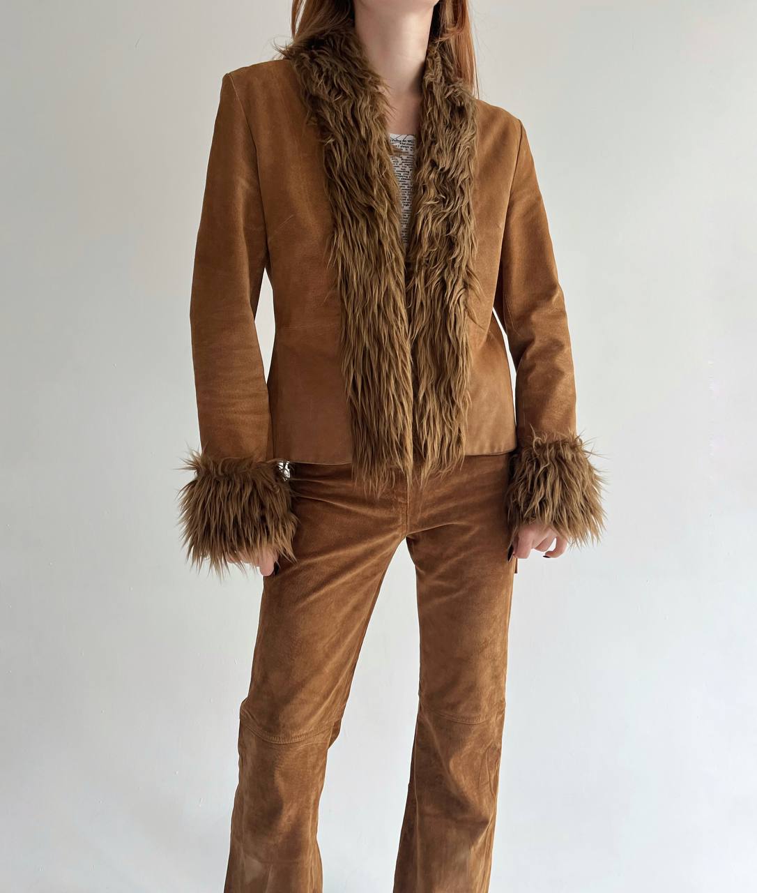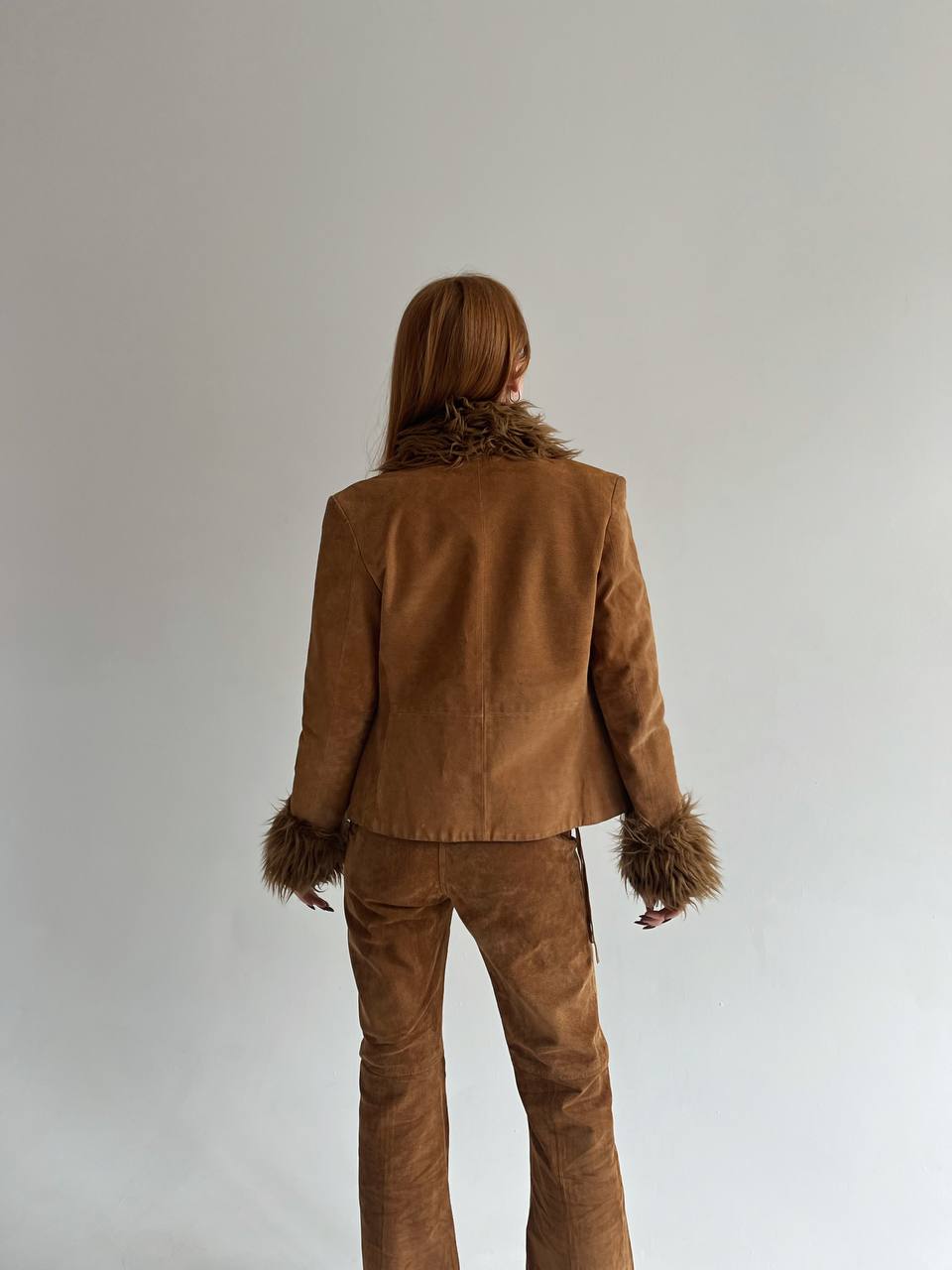 Vintage genuine leather camel penny lane Afghan short jacket with faux fur