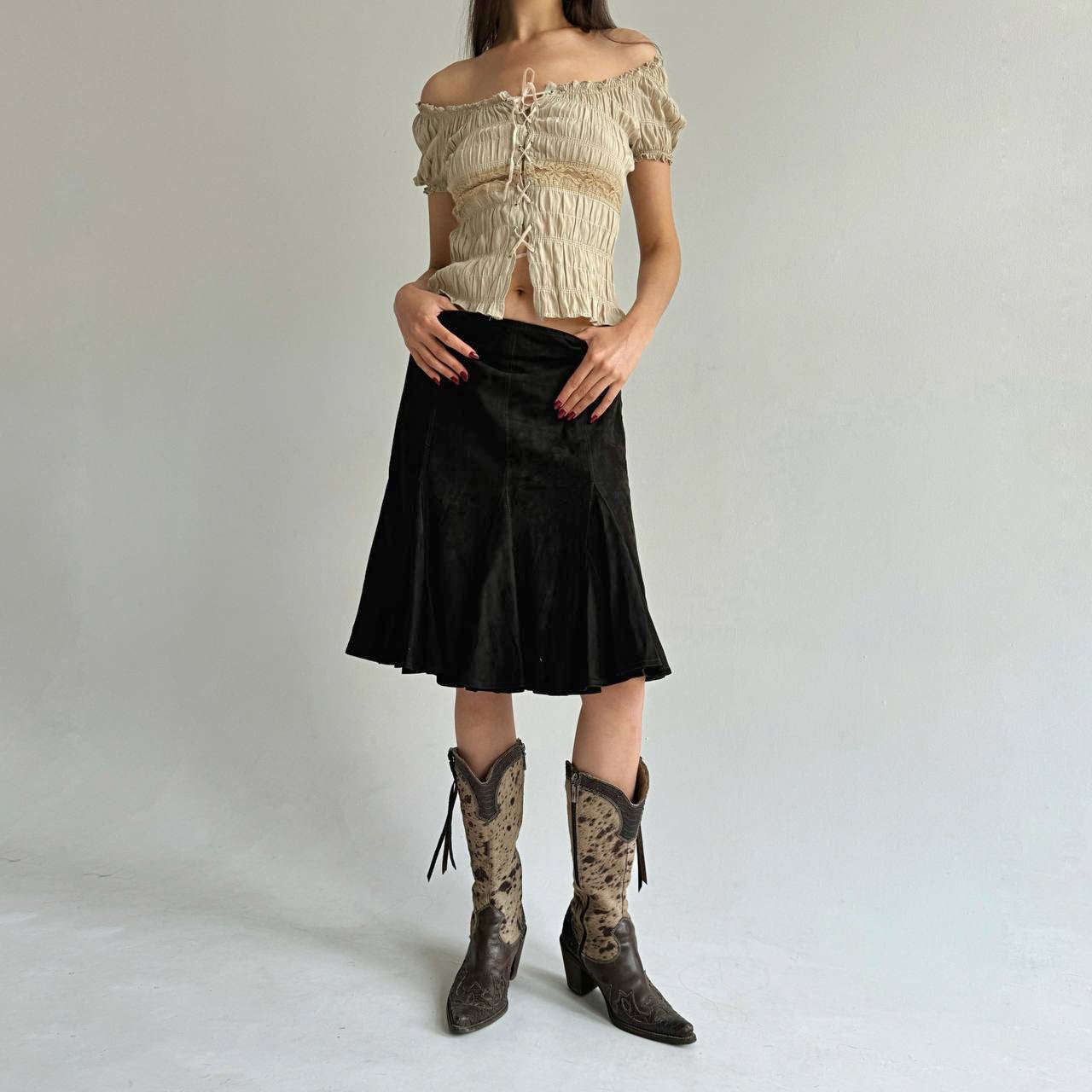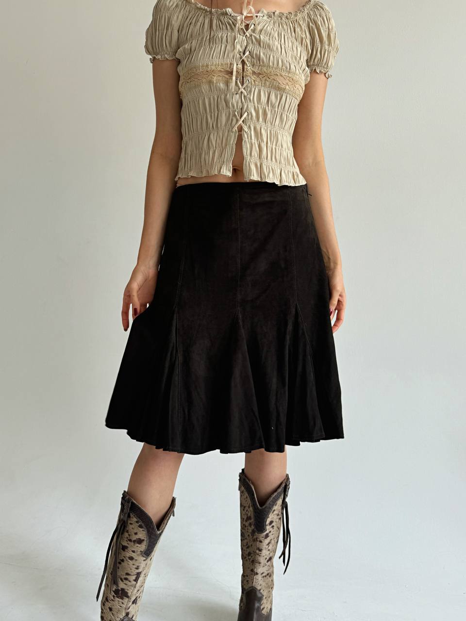 Vintage genuine suede brown skirt
