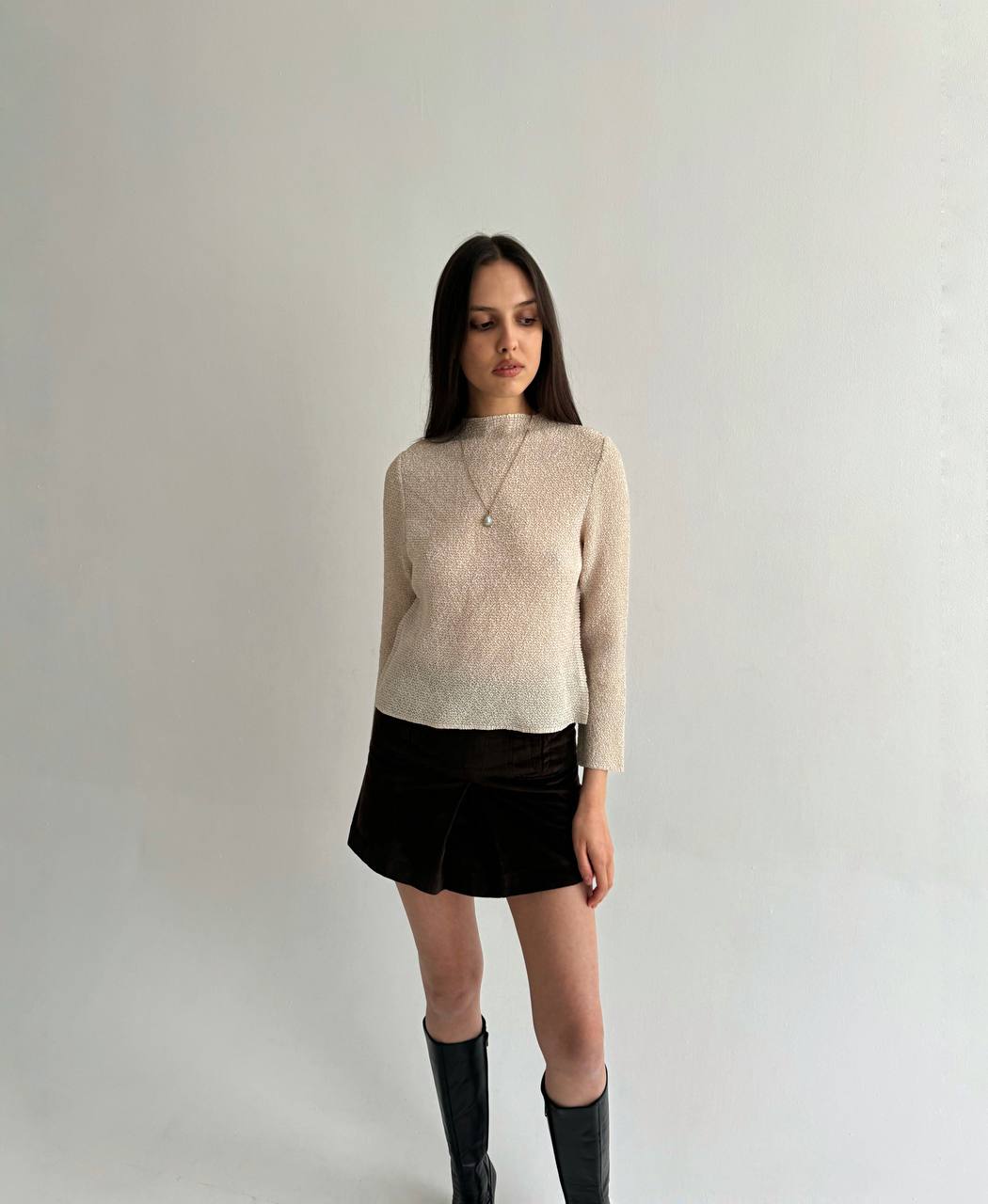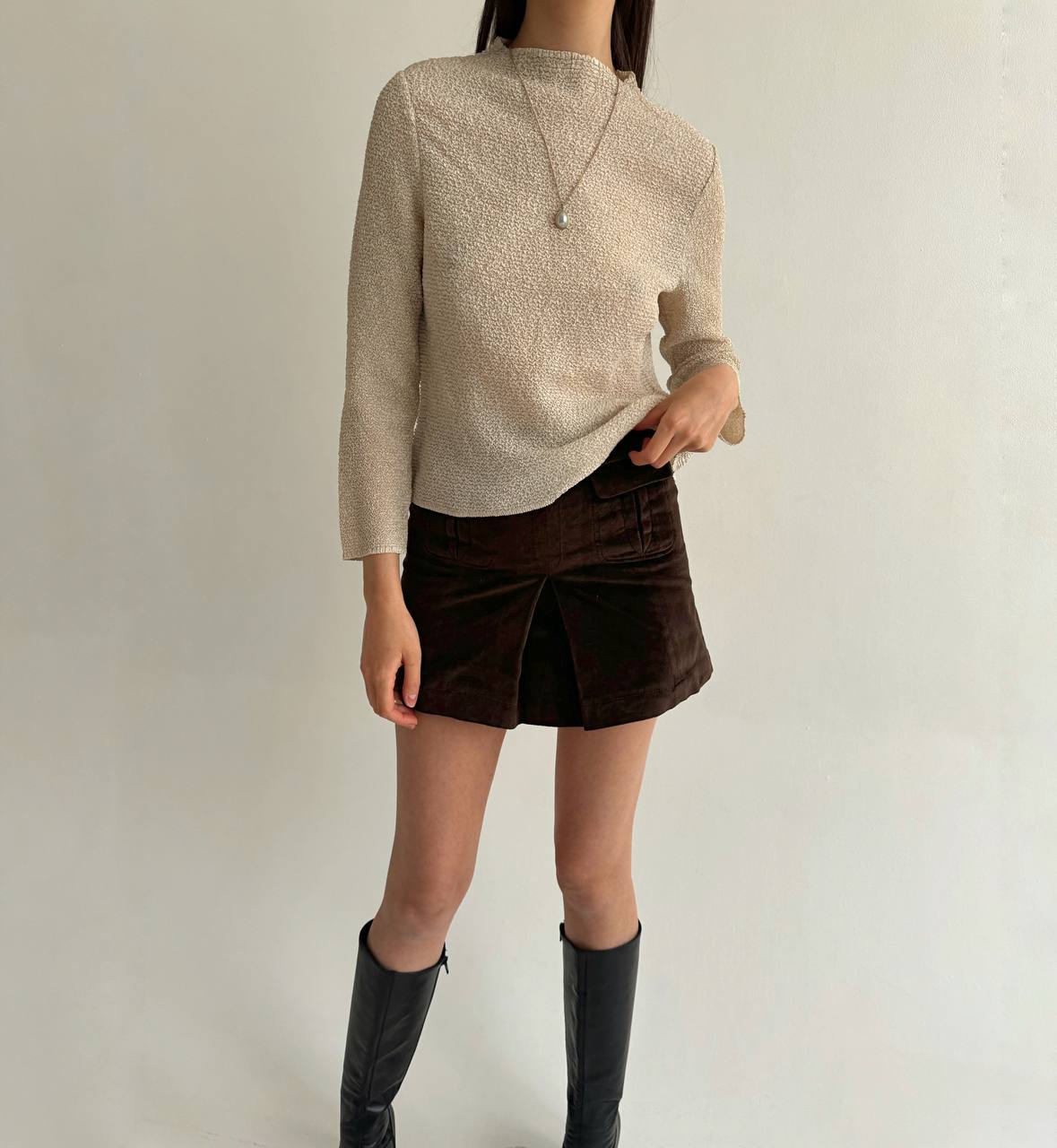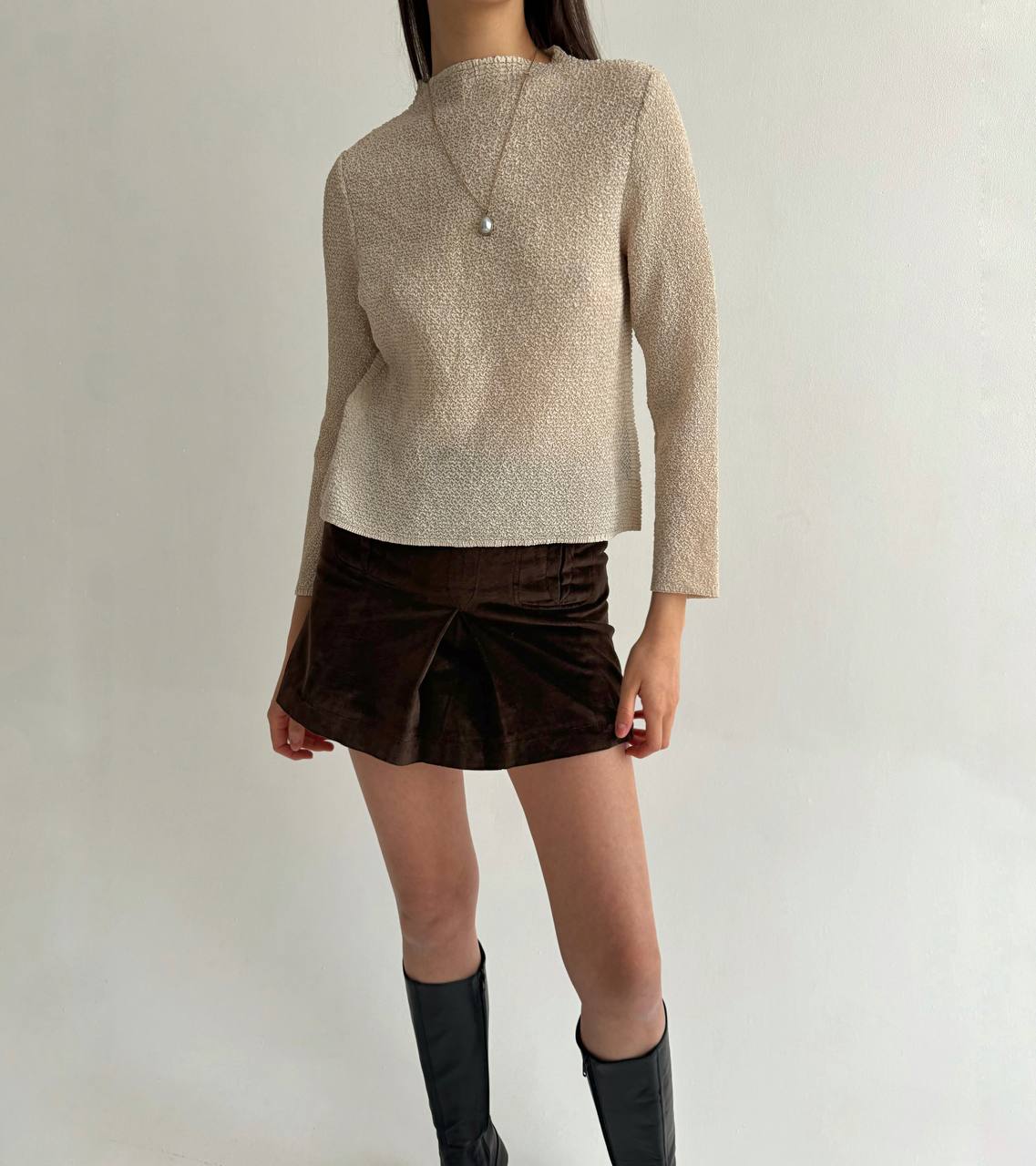 Vintage Japanese brand crinkle pleated beige blouse