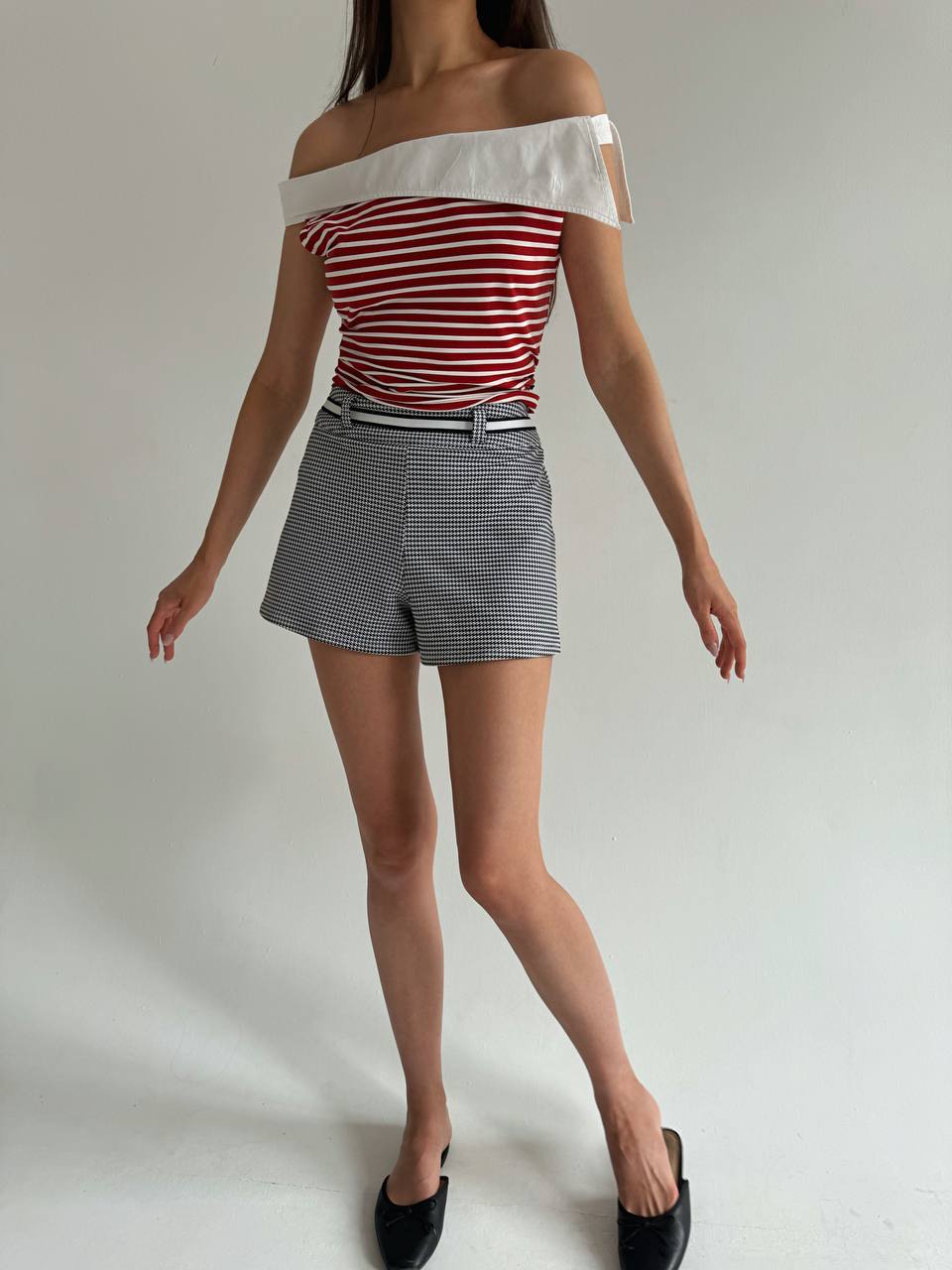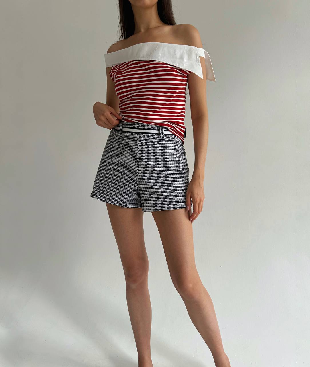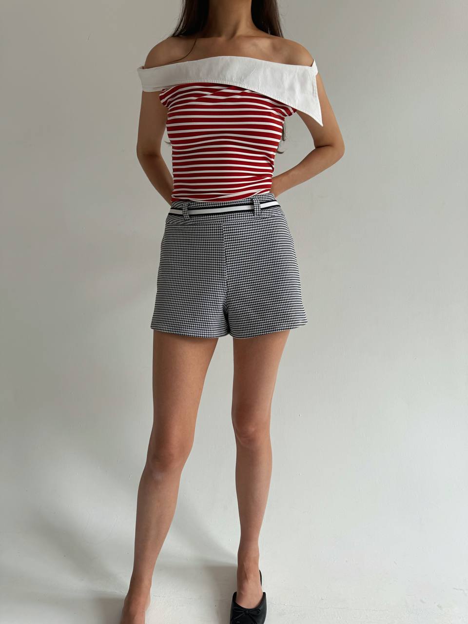Vintage La Perla houndstooth check mini high waisted shorts with black and white waist stripe