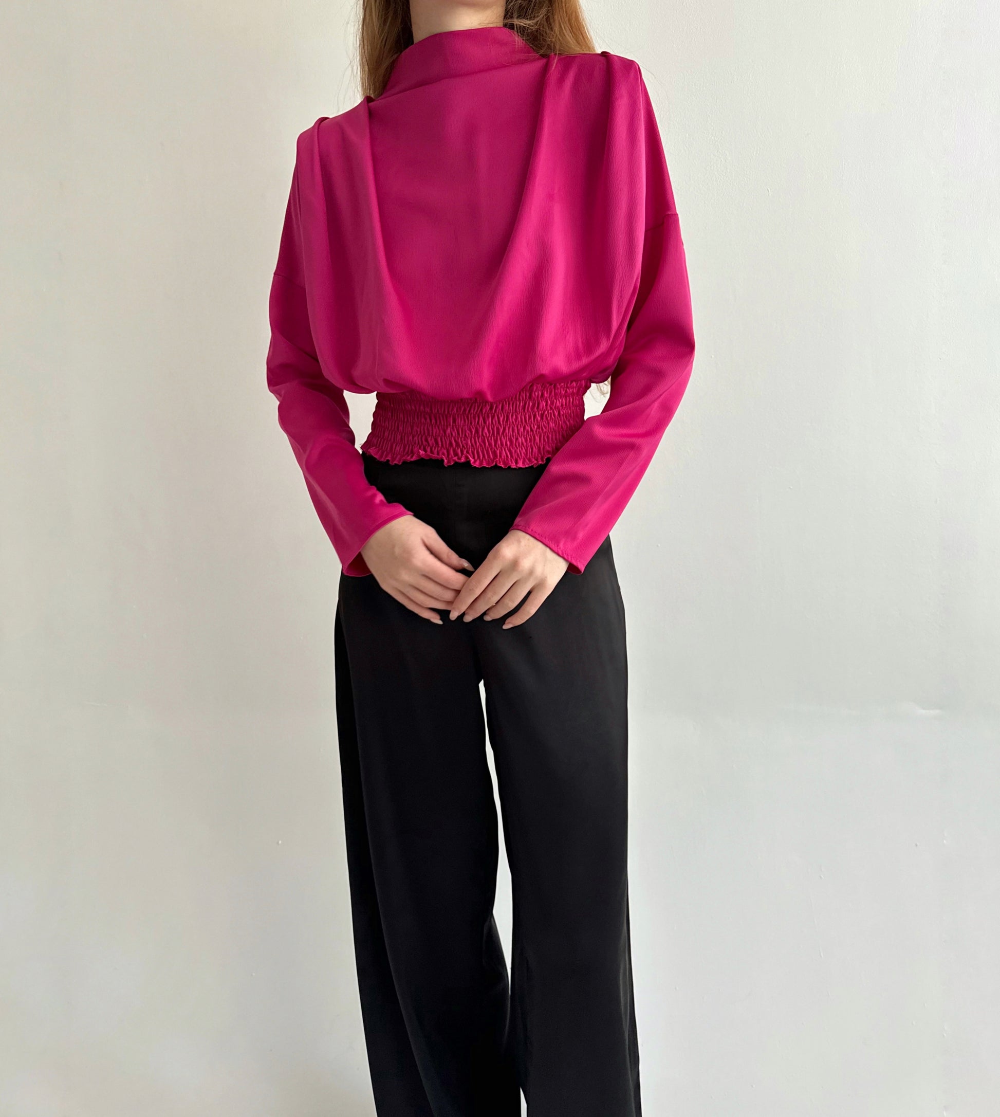 Vintage made in Italy fuchsia pink blouse with draped front and elastic waist