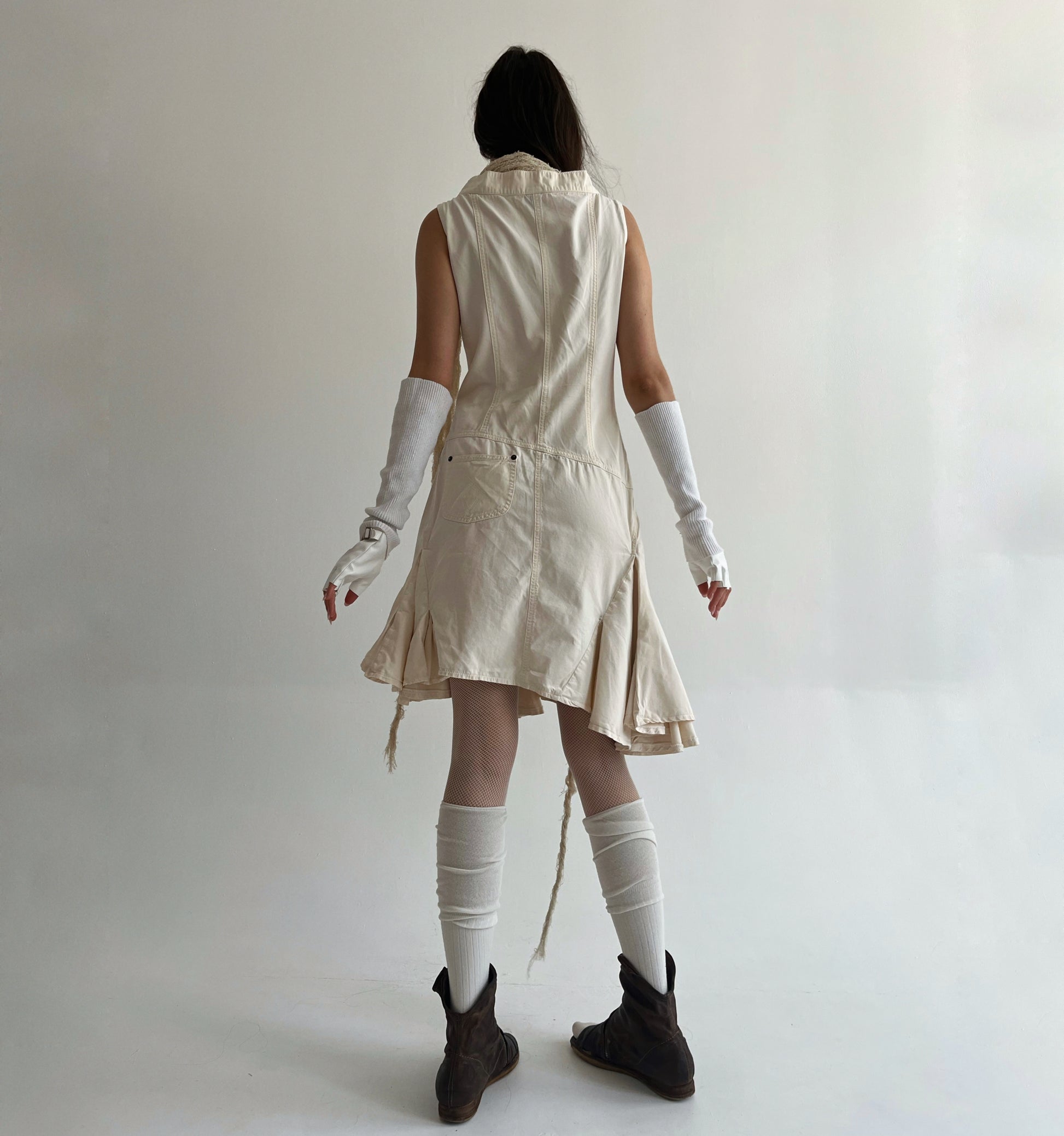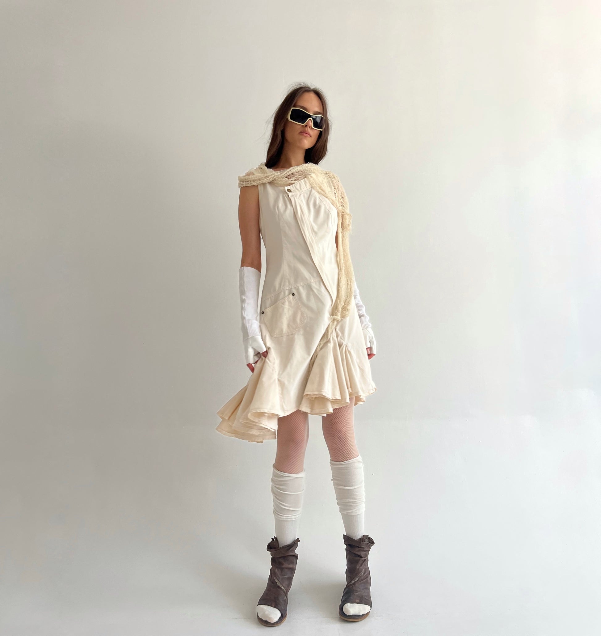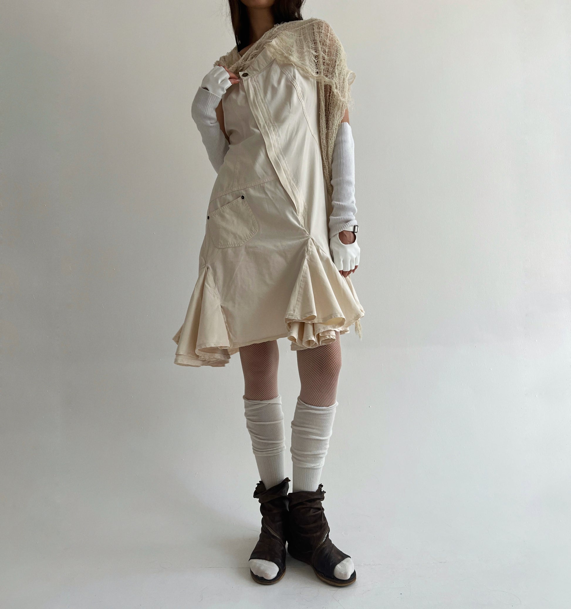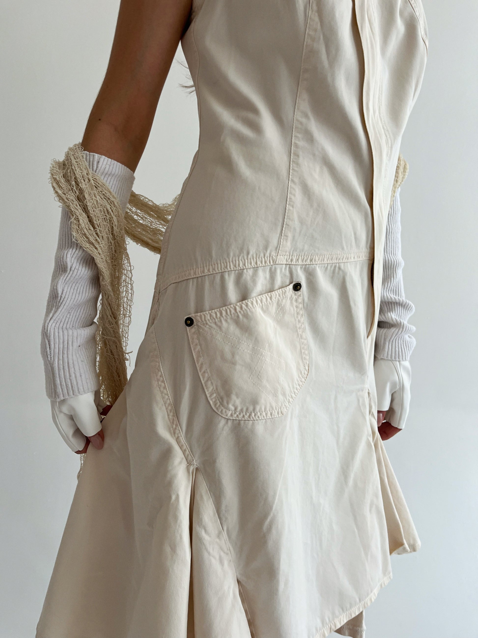 Vintage Plein Sud beige avant garde cotton asymmetrical dress with ruched bottom and some pockets