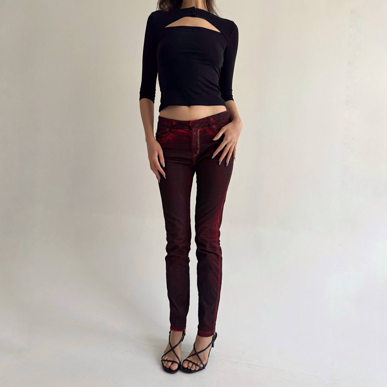Vintage Plein Sud cotton red washed denim skinny jeans