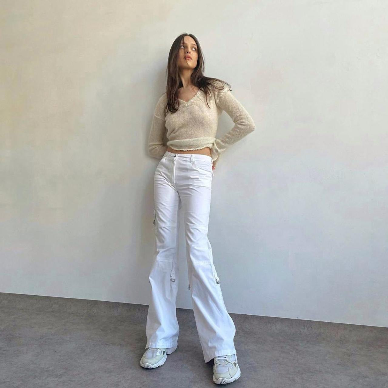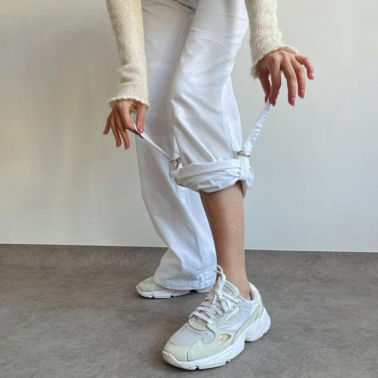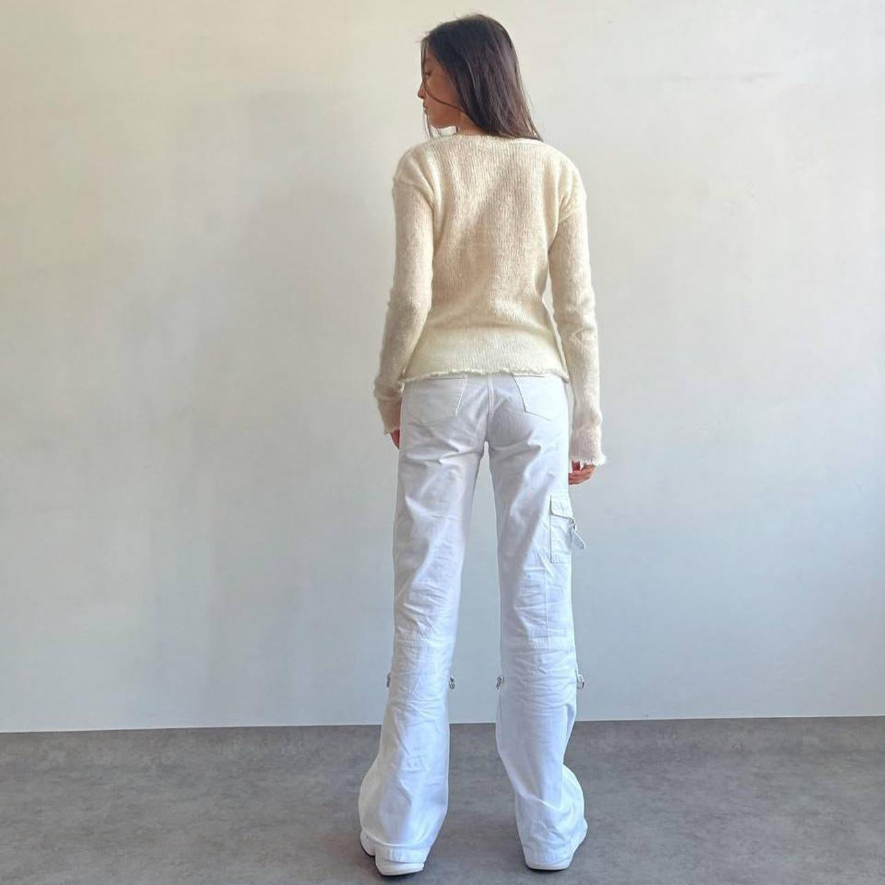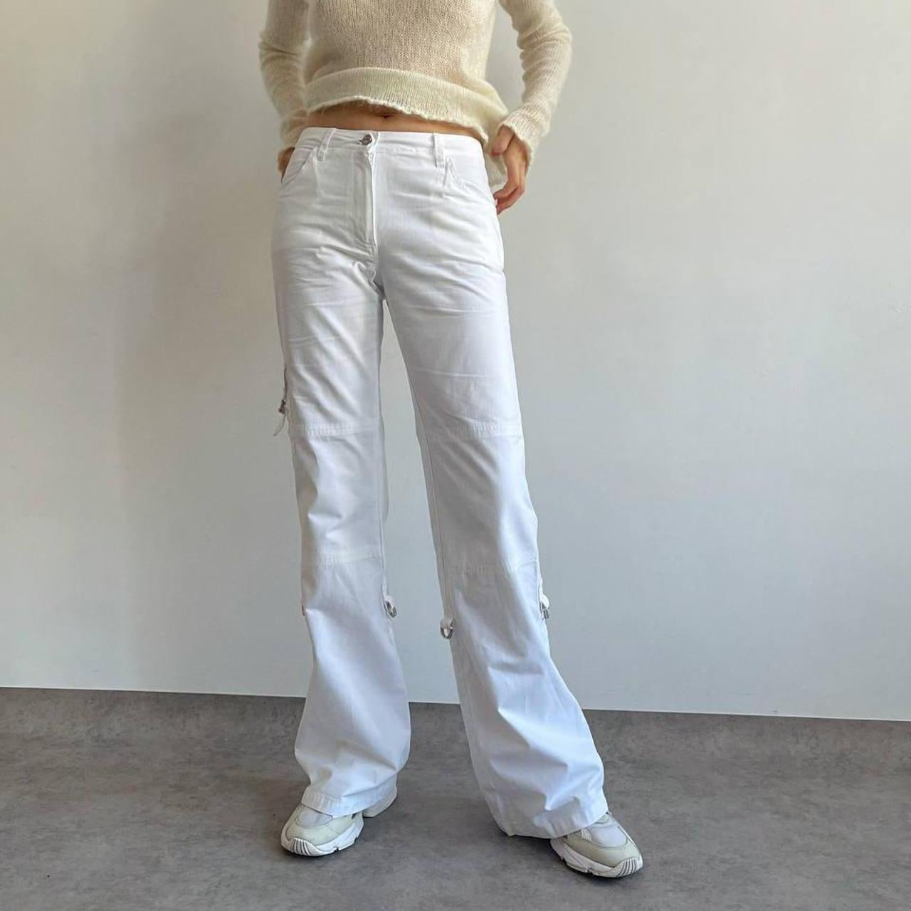 Vintage y2k cotton white long wide cargo pants with side pocket. You can make them shorter with side ties