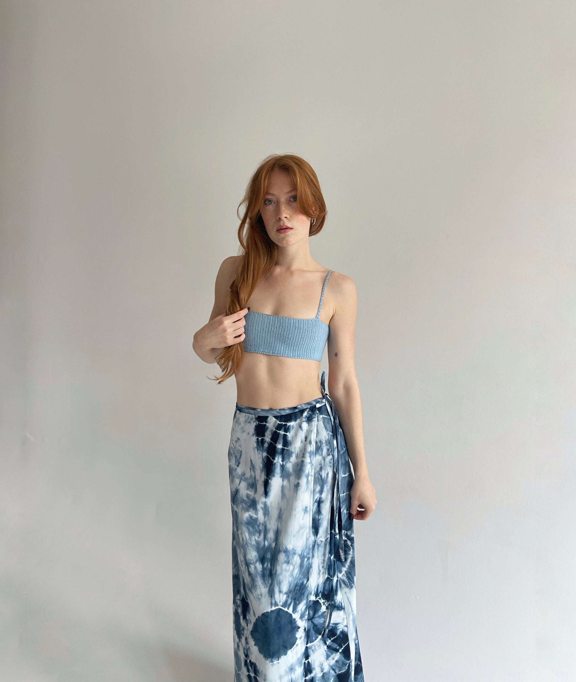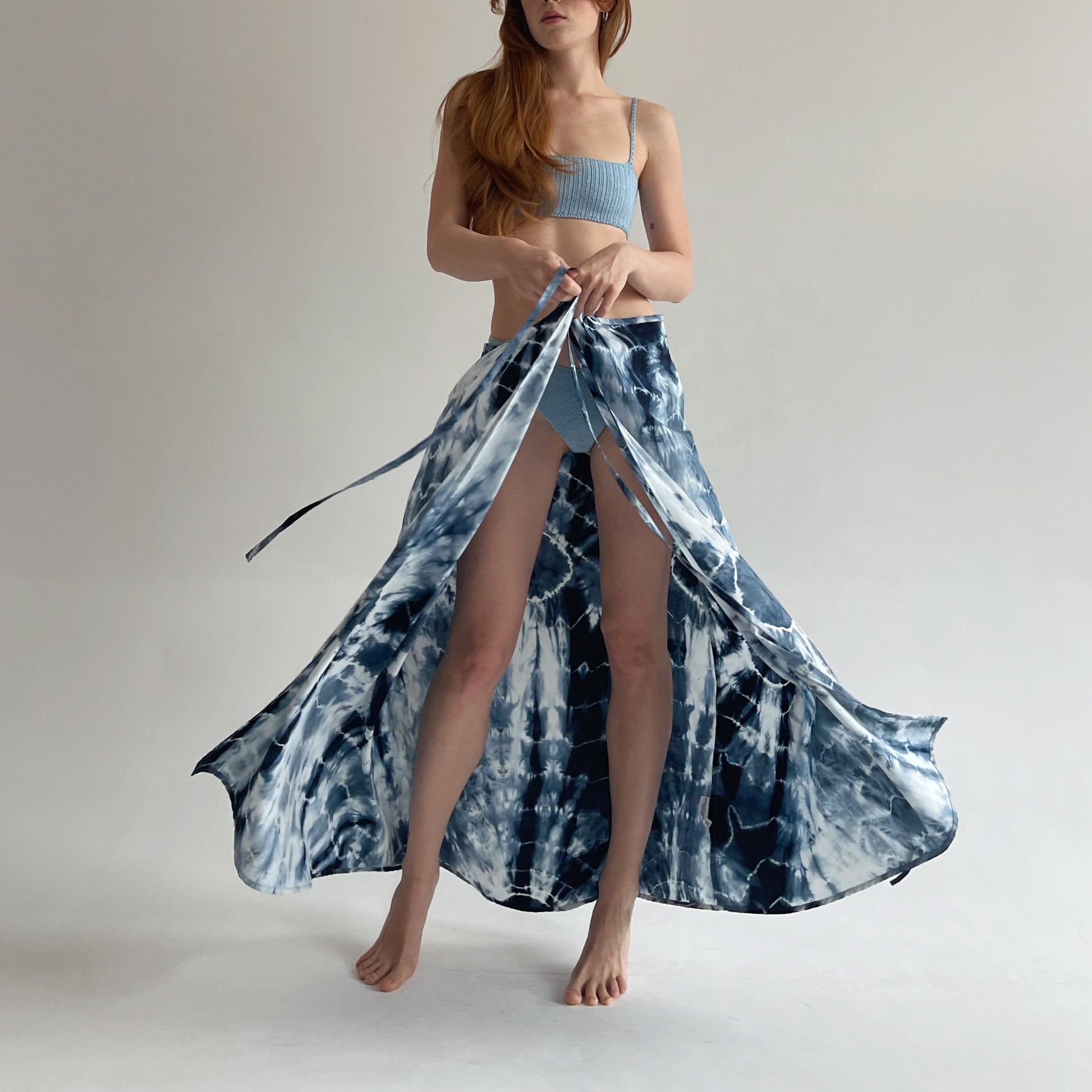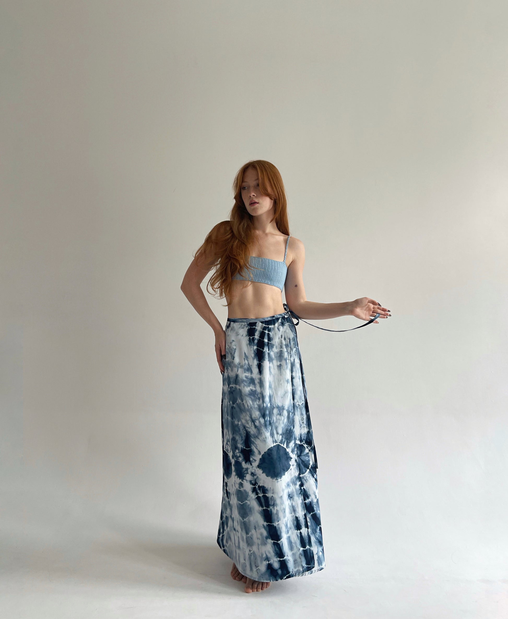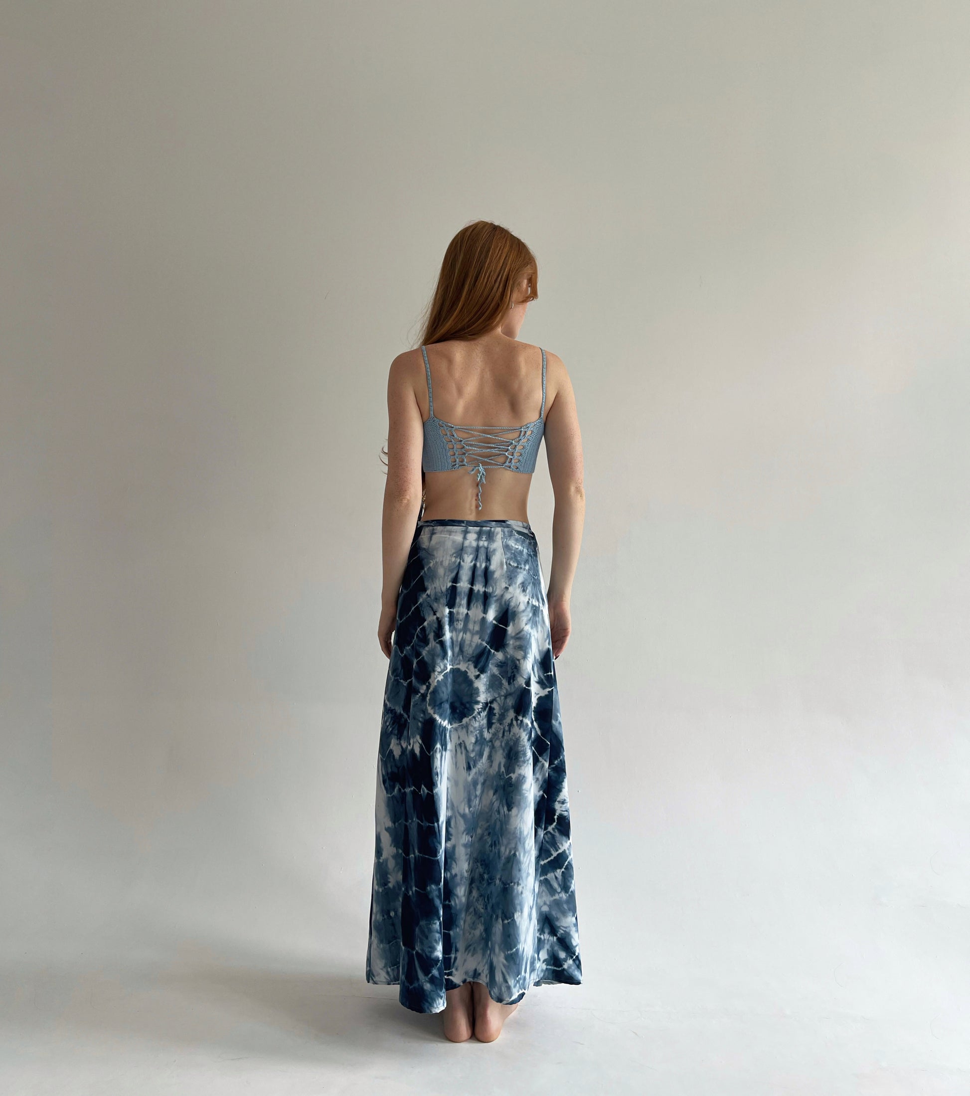 Vintage blue tie dye wrap skirt in maxi length