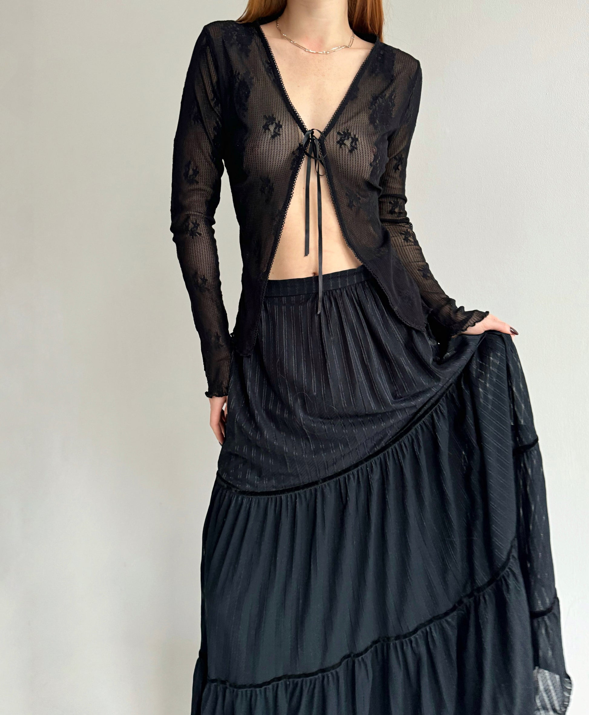 Y2K black lace cardigan