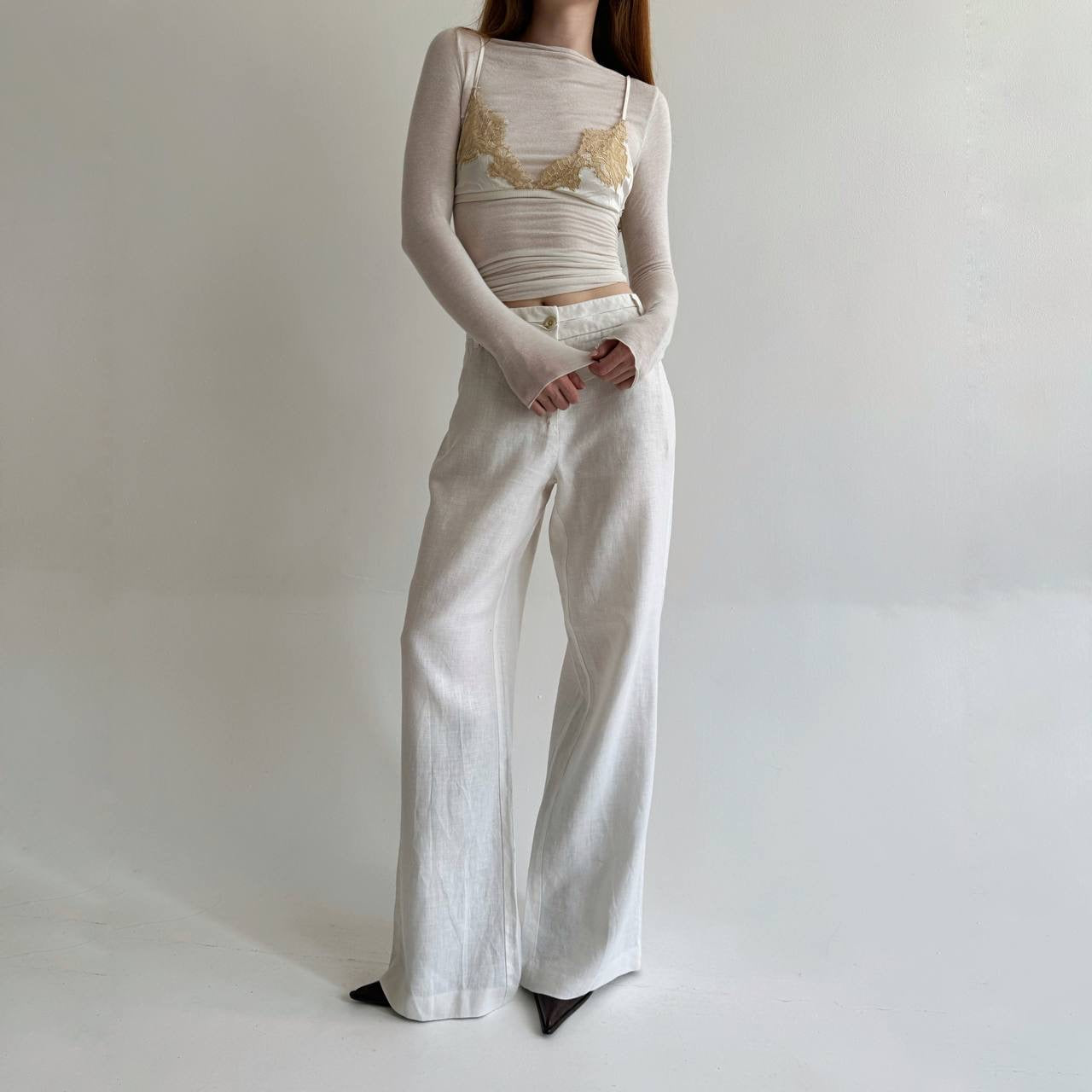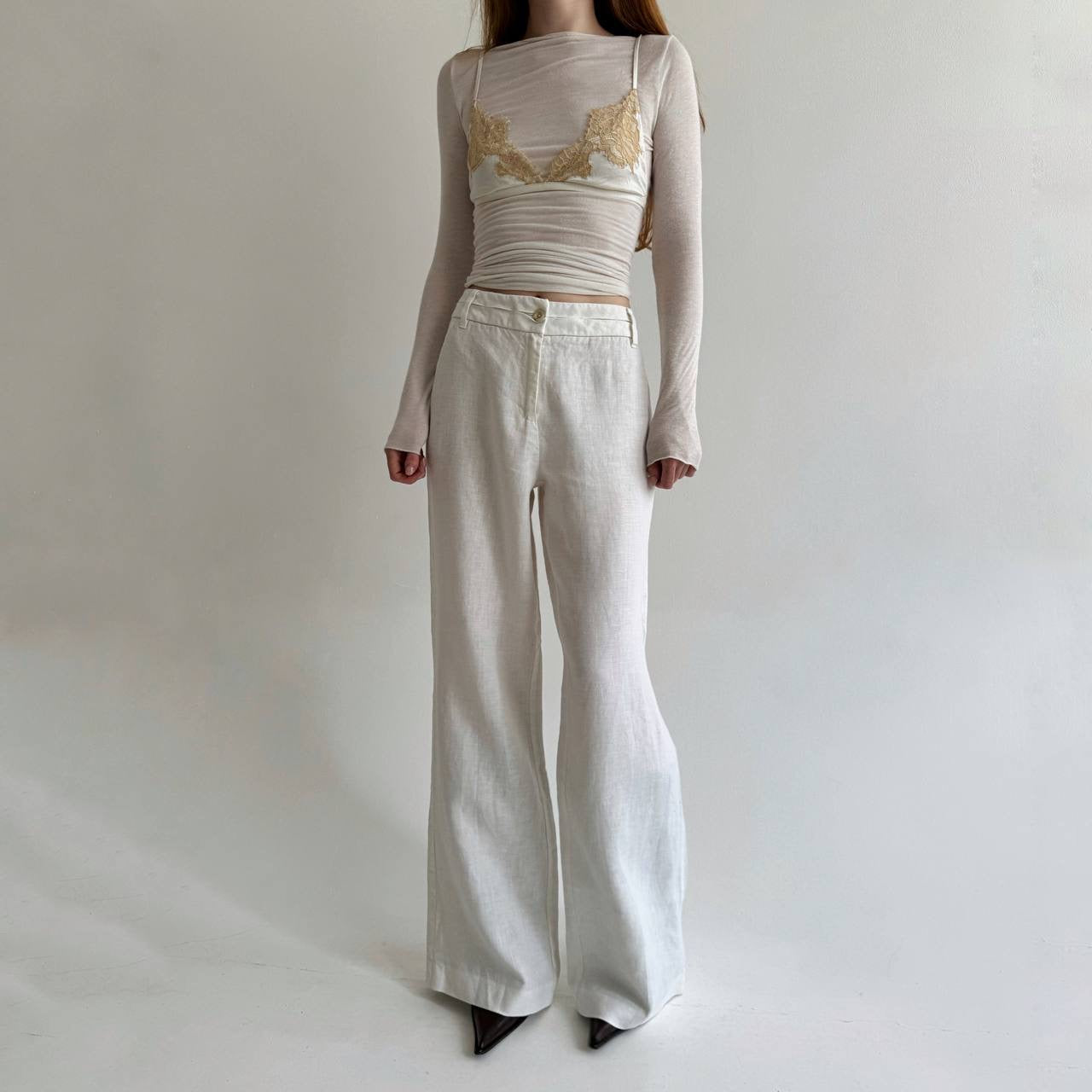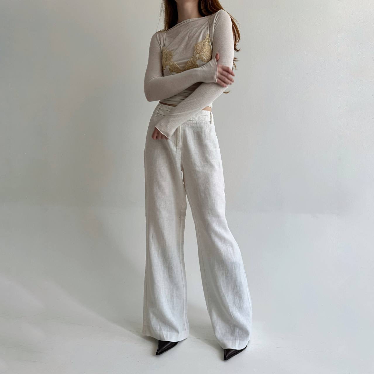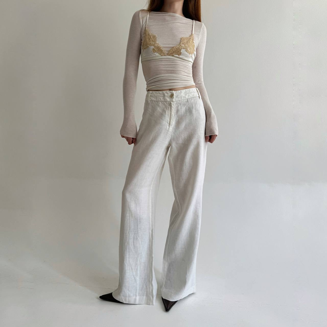 Vintage Y2K 100% linen white wide leg high waisted pants