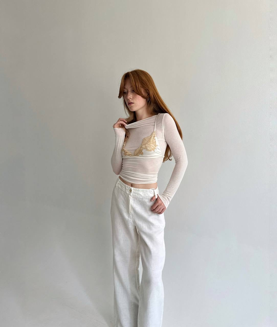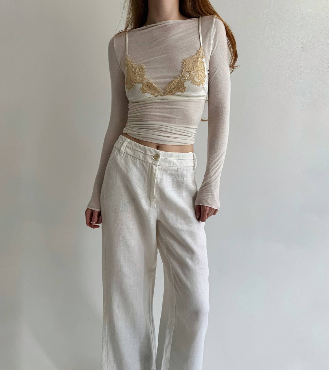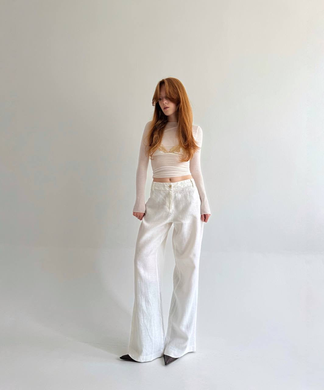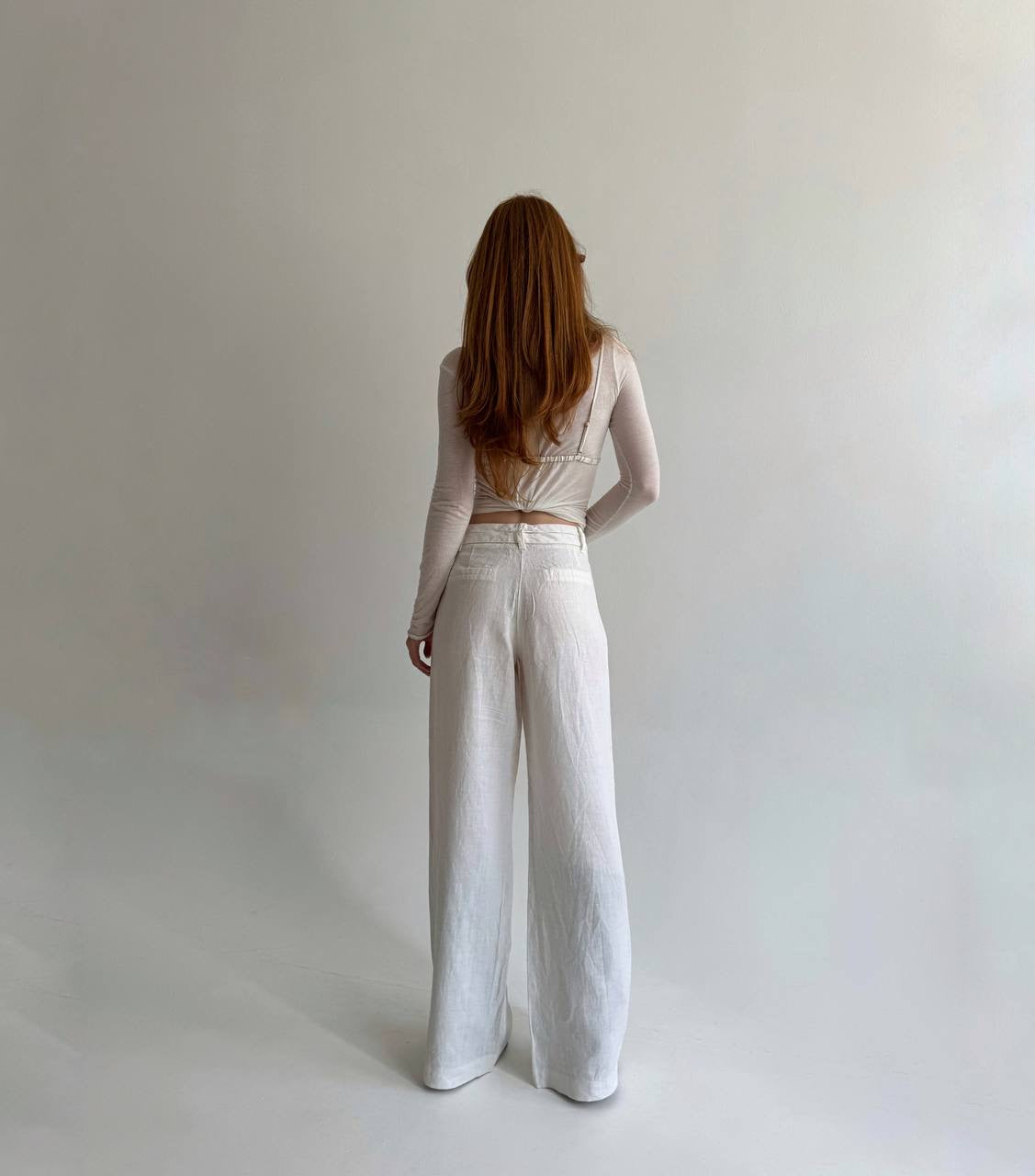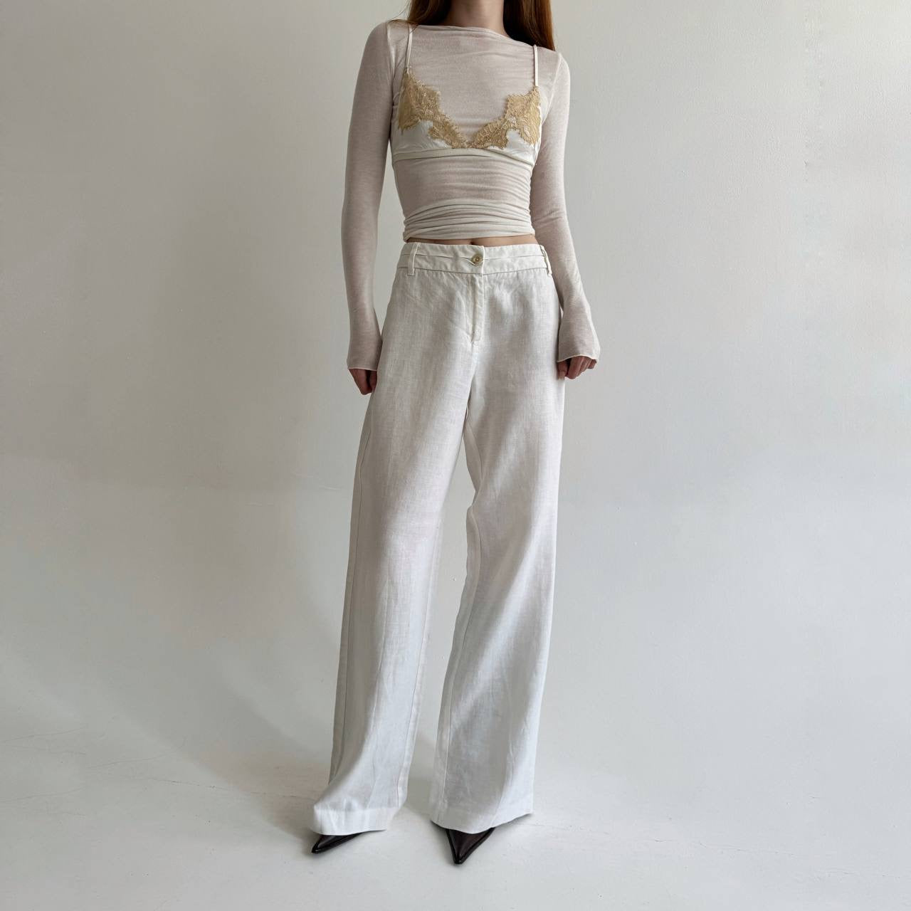 Vintage Y2K 100% linen white wide leg high waisted pants